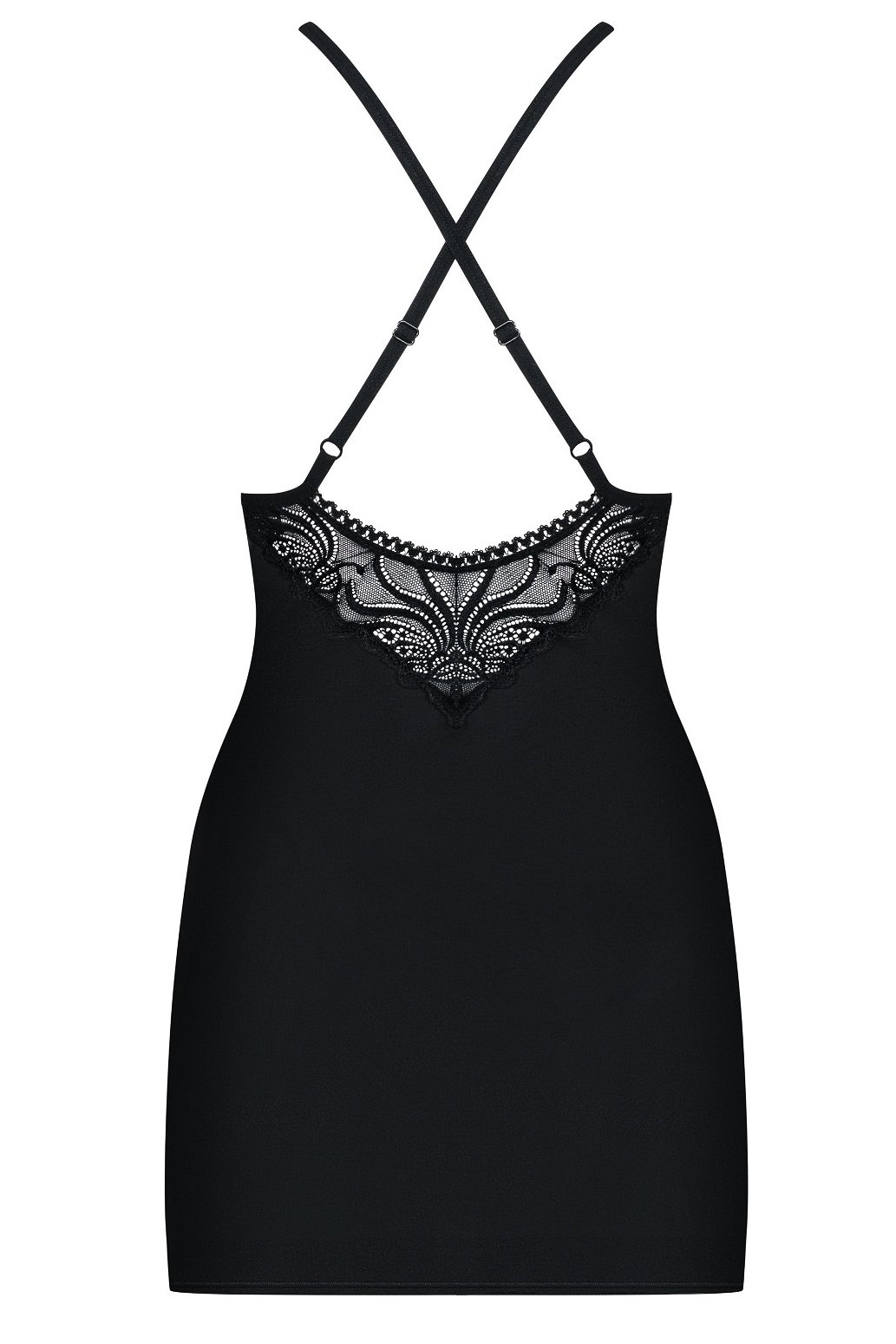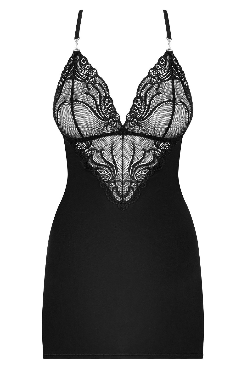 Nech se okouzlit detaily, které dělají ten rozdíl. Tato nádherná košilka je ušitá z delikátní, mimořádně hladké tkaniny, která jemně splývá po pokožce a krásně se přizpůsobí postavě. Nastavitelná ramínka se na zádech sexy kříží a dodávají modelu rafinovaný vzhled, zatímco lesklé vsadky propojující košíčky s ramínky vytvářejí jemný, šperkový efekt. Hlavní roli ale hraje krajkový dekolt s výjimečnými vzory – působí smyslně a zároveň elegantně. Set obsahuje košilku i tanga, takže je připravený na chvíle, kdy chceš vypadat opravdu výjimečně.