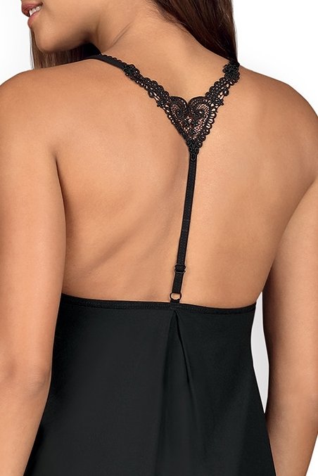 Dámská košilka Chiccanta Babydoll je dokonalou kombinací elegance a svůdnosti. Jemná krajka a hladký materiál se půvabně snoubí, zatímco hluboký výstřih a průstřih pod mašlí lákavě zvýrazňují dekolt. Díky originálnímu řešení zad s krajkovým motivem působí model zádně i zezadu mimořádně atraktivně. Lehký, elastický materiál příjemně obepíná tělo a zároveň nechává prostor fantazii. V kompletu najdete také sladěná tanga, která perfektně doplňují celek. Skvělá volba pro výjimečné chvíle, kdy chcete zaujmout svým ženským šarmem.