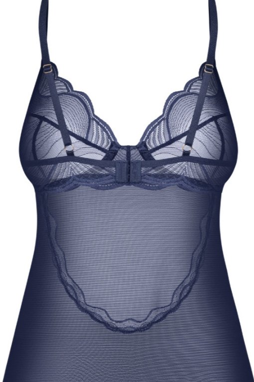Košilka MP Blue je kousek, který působí lehce a smyslně, ale zároveň drží tvar a sedí přesně tam, kde má. Jemný mesh s organickým vzorem krásně kopíruje postavu a dodává modelu moderní, sofistikovaný vzhled. Spodní část je zakončená elastickou krajkou, která je příjemná na těle a opticky zvýrazní ženské křivky bez nepříjemného zařezávání. Prsní část s kosticemi decentně zvedne a vytvaruje poprsí, takže se budete cítit jistě i bez další vrstvy. Díky nastavitelným ramínkům a vícestupňovému zapínání si košilku snadno doladíte na svou postavu. Granátová barva v kombinaci se zlatými detaily působí jako šperk – ideální volba na výjimečný večer i pro chvíle, kdy chcete mít luxusní prádlo jen pro sebe.