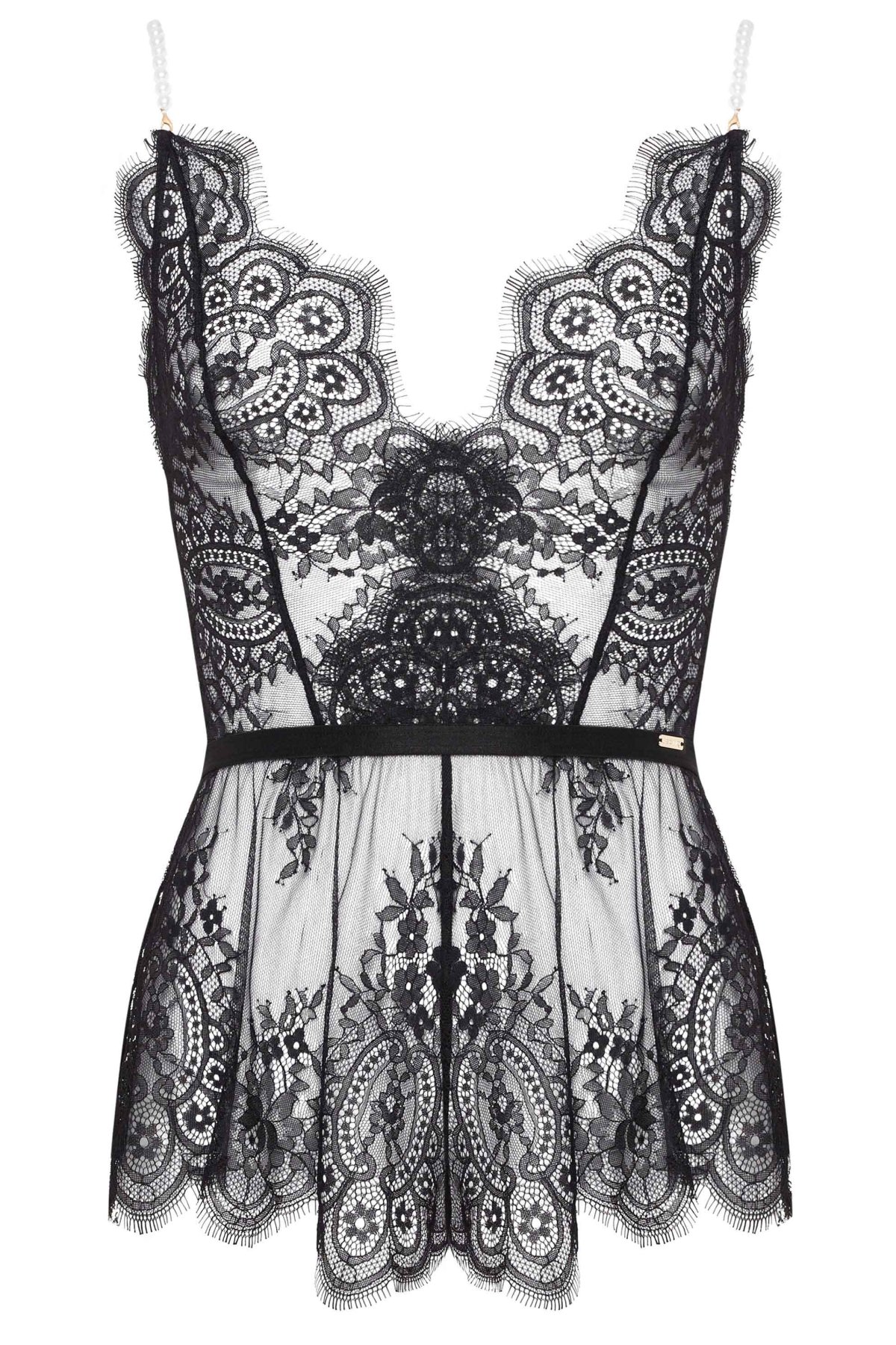Erotický overal Pardon zaujme na první pohled svou jemností i smyslností. Průhledná krajka s výraznými ornamenty se elegantně přizpůsobí tělu, hluboké výstřihy a saténová stuha v pase zdůrazní ženské křivky. Perlové detaily na ramínkách dodávají celému modelu dotek luxusu a romantiky. Tento model je ideální volbou pro speciální večery — lehký, přitažlivý a nesmírně ženský.
