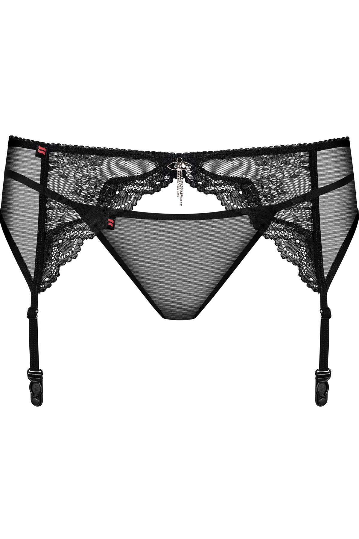 Elegantní podvazkový pás z hladkého, efektního materiálu zvýrazní křivky a dodá outfitu svůdný šmrnc. Květinová krajka na přední i zadní části vytváří rafinovaný, luxusní dojem a zároveň vypadá skvěle při každém pohybu. Precizní zpracování zajišťuje, že pás pěkně sedí a působí upraveně, zatímco drobný detail s cyrkonií přidává jemný třpyt. V balení najdete i sexy tanga, takže máte kompletní set připravený na večer, kdy chcete zaujmout.