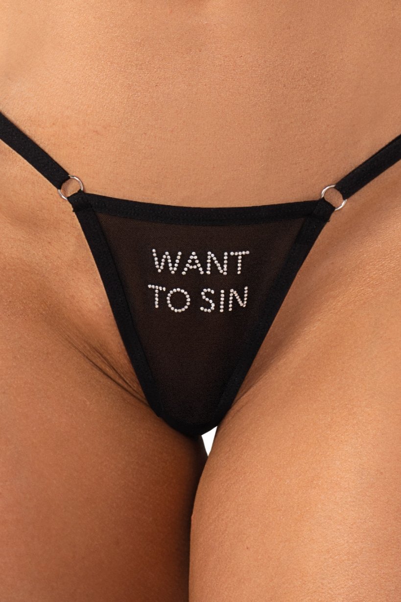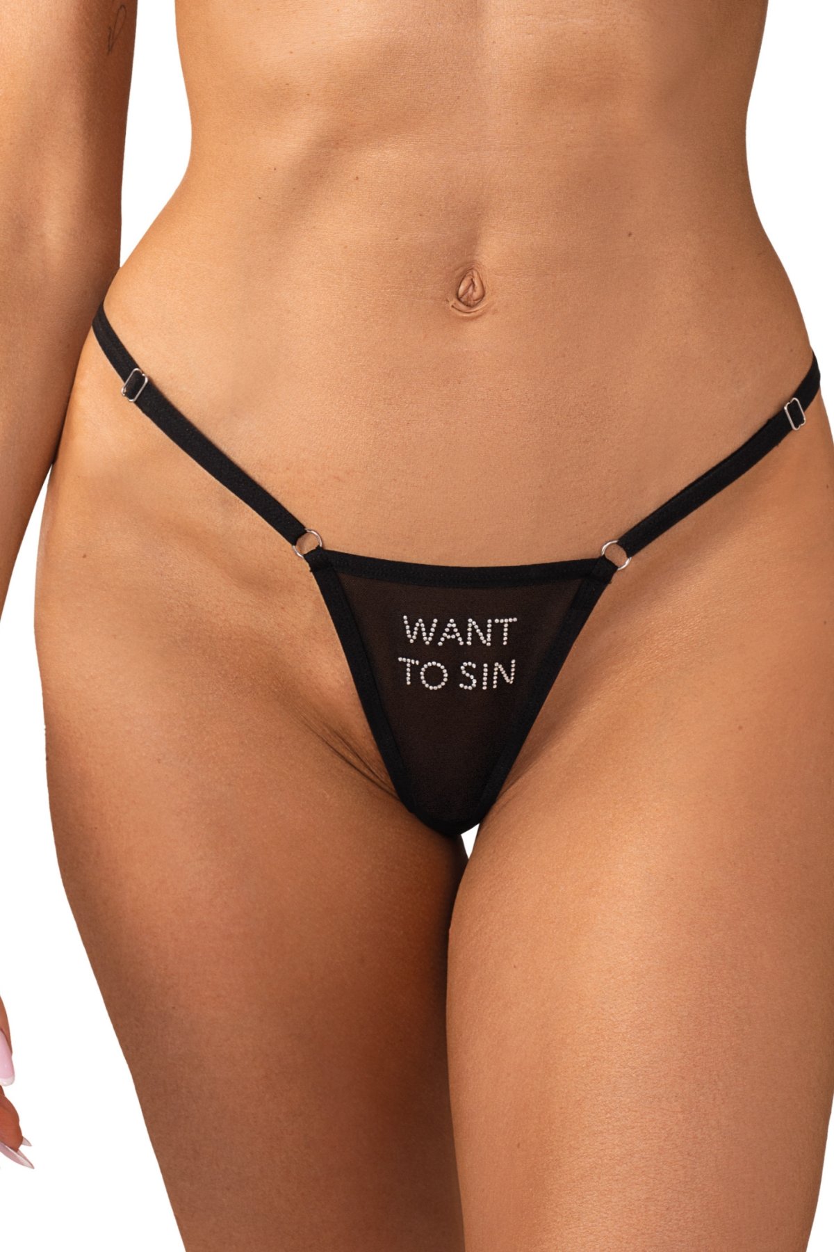 Tanga „Want to Sin“ jsou navržená pro ženy, které se nebojí flirtovat a chtějí dodat svému vzhledu dravější nádech. Průsvitná síťovina decentně odhaluje tělo, zatímco třpytivý nápis z kamínků jasně naznačuje, že večer bude mít jiskru. Nastavitelné pásky jemně obepnou boky, přizpůsobí se postavě a zajistí pohodlí při nošení. Perfektní volba na speciální chvíle, kdy chcete zaujmout a cítit se sebevědomě a smyslně.