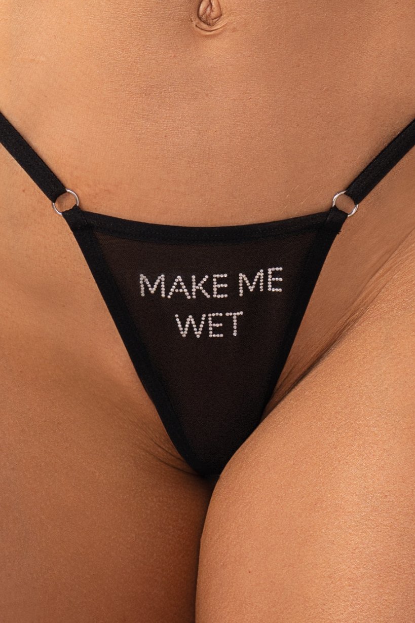 Smyslná tanga jsou prádlo, které už na první pohled zvedne teplotu a dodá stylizaci odvážný, provokativní nádech. Průsvitná, lehká síťovina jemně odhaluje tělo, zatímco třpytivý nápis z kamínků přitahuje pozornost a jasně naznačuje, že večer může být pořádně pikantní. Díky jemným, nastavitelným páskům se tanga perfektně přizpůsobí linii boků – jsou svůdná, ale zároveň překvapivě pohodlná. Model pro ženy, které milují flirt, hravou narážku a detaily, které rozproudí fantazii.