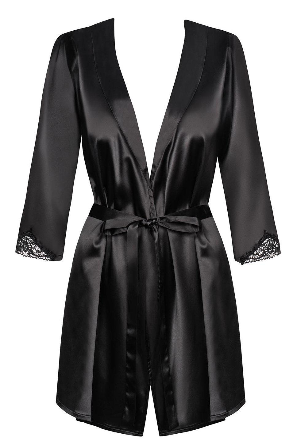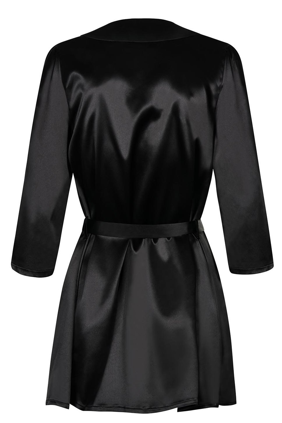 Ráda působíš nevinně a přitom umíš překvapit svou hravou stránkou? Saténový župan Satinia v hluboké černé barvě dodá nádech tajemství a krásně zahalí tvé křivky… ale jen na okamžik. Stačí jediné rychlé zatažení za široký saténový pásek a kouzlo odhalení je na světě. Lesklá tkanina působí svůdně a zároveň elegantně, 3/4 rukávy jsou pohodlné a jemné detaily z černé guipury na jejich okrajích dodávají modelu sofistikovaný šmrnc. A protože celek má být dokonalý, součástí setu jsou i tanga ladící se županem – připraveno na chvíle, kdy chceš být něžná i odvážná zároveň.