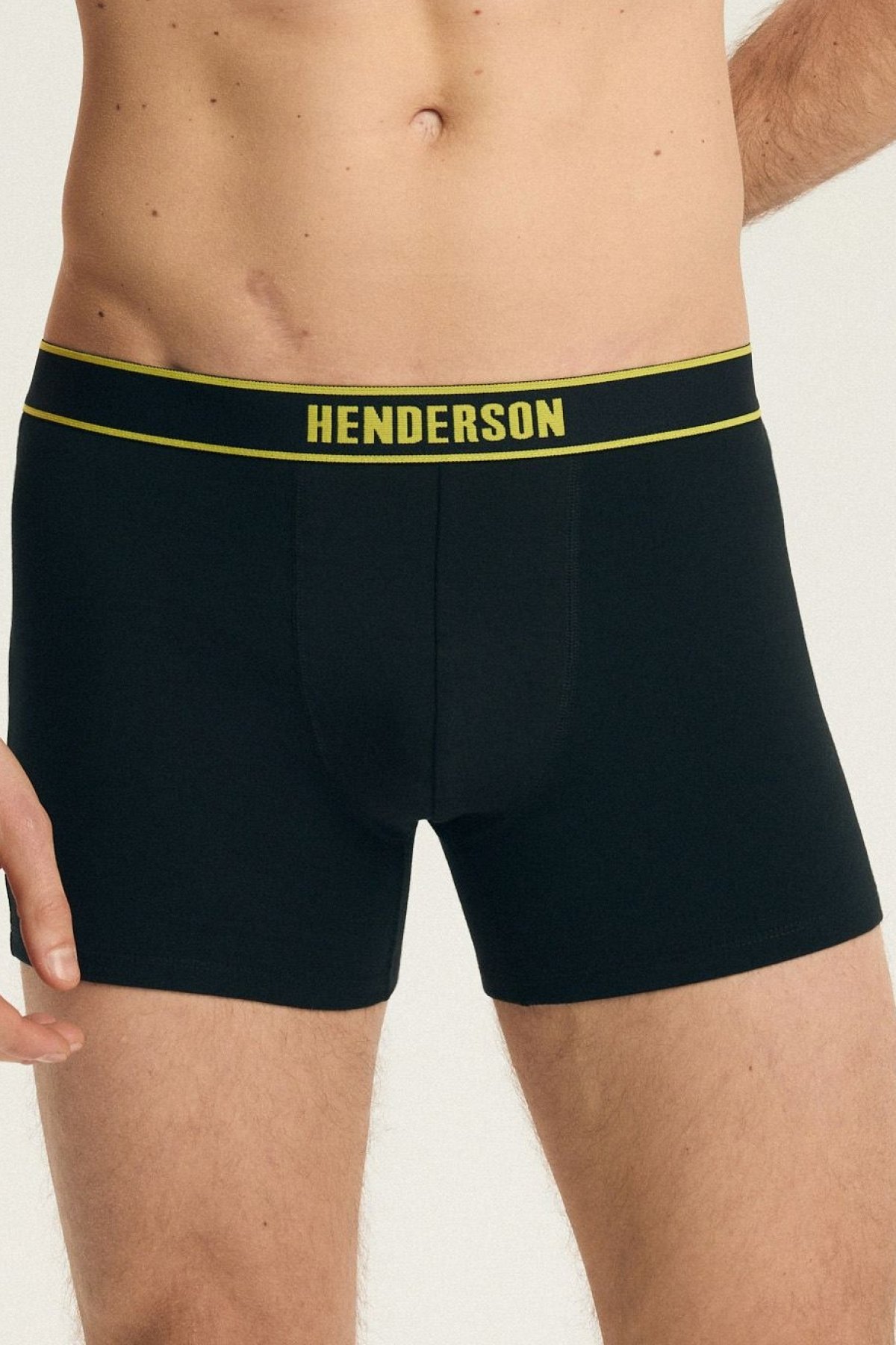 Pánské boxerky Henderson 44556 Bee jsou klasický model pro každodenní nošení. Kvalitní bavlna s příměsí elastanu je příjemná na těle, dobře se přizpůsobí a zároveň si drží tvar. Pohodlný střih doplňuje široká guma v pase s logem značky, která dobře sedí a podporuje komfort při nošení. Boxerky jsou balené po dvou kusech v černém provedení, doplněném o barevně odlišené gumy.