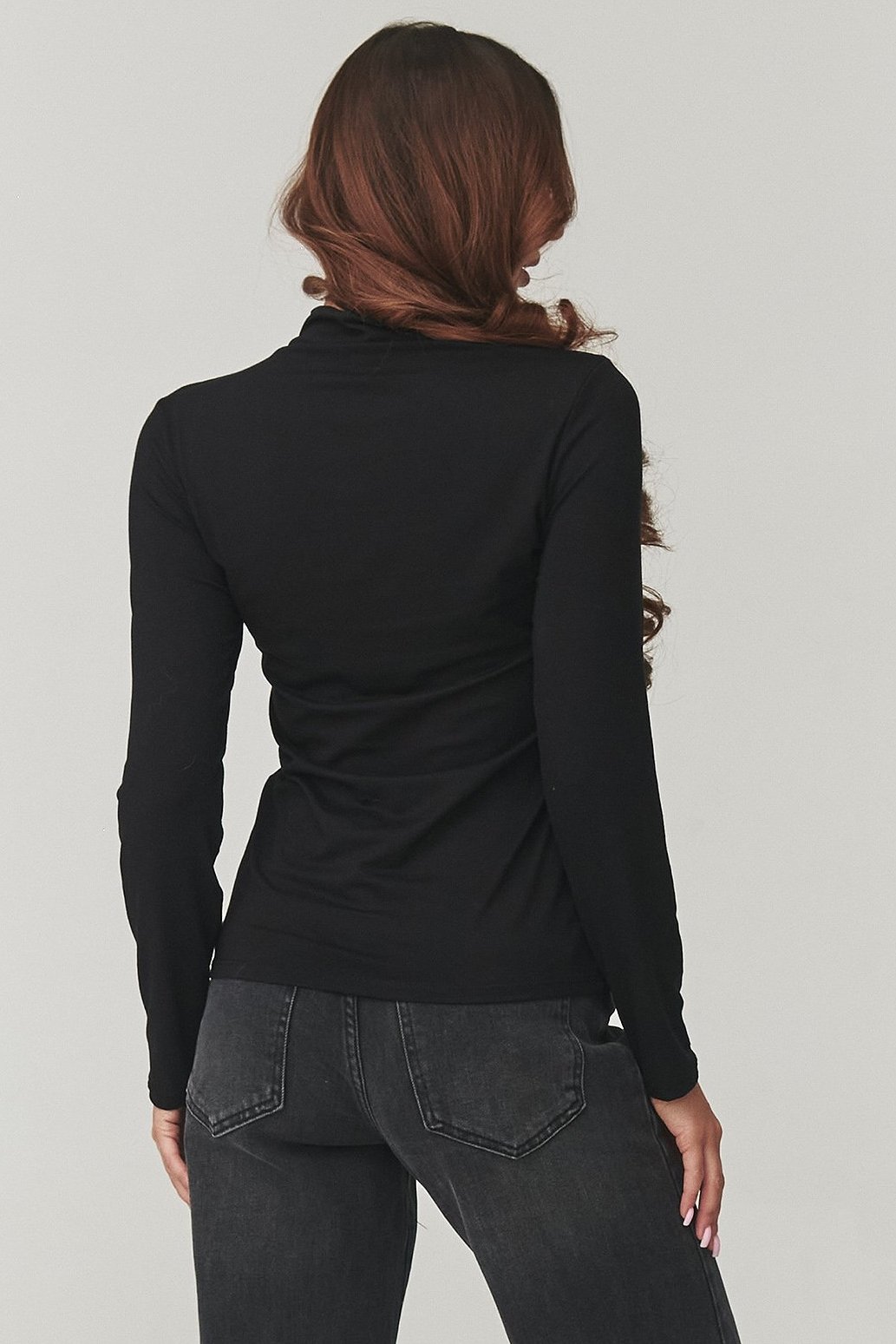 Dámska čierna blúzka s nízkym rolákom. Elegantný základ, ktorý by nemal chýbať v žiadnom šatníku. Jej nadčasový strih zvýrazňuje krk a pôsobí žensky. Vyrobená z pružnej, na dotyk veľmi jemnej látky, perfektne sa prispôsobí postave. Blúzka sa skvele kombinuje s džínsami, sukňou aj elegantnými nohavicami – nosiť ju môžete samostatne alebo ako spodnú vrstvu pod sako či sveter. Ideálne doplní jesenné aj zimné outfity. Tento univerzálny basic kúsok ocení každá žena, ktorá dáva prednosť jednoduchému, ale premyslenému štýlu.