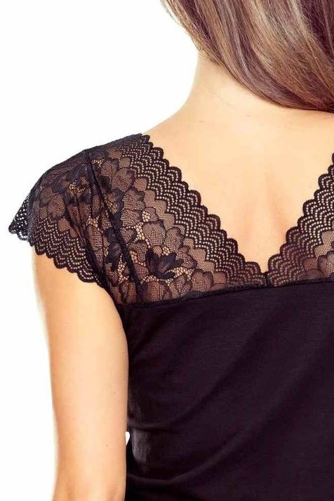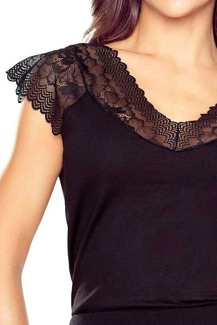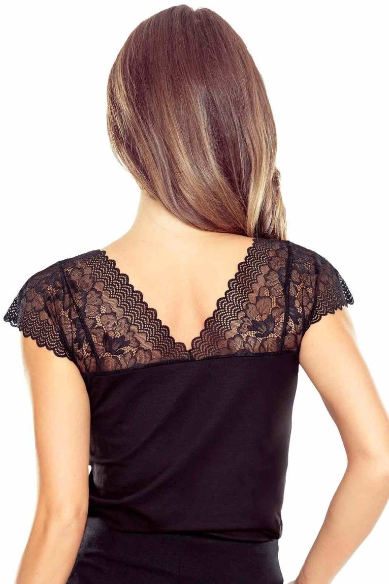 Černá halenka s krajkovým sedlem přes ramena a dekolt