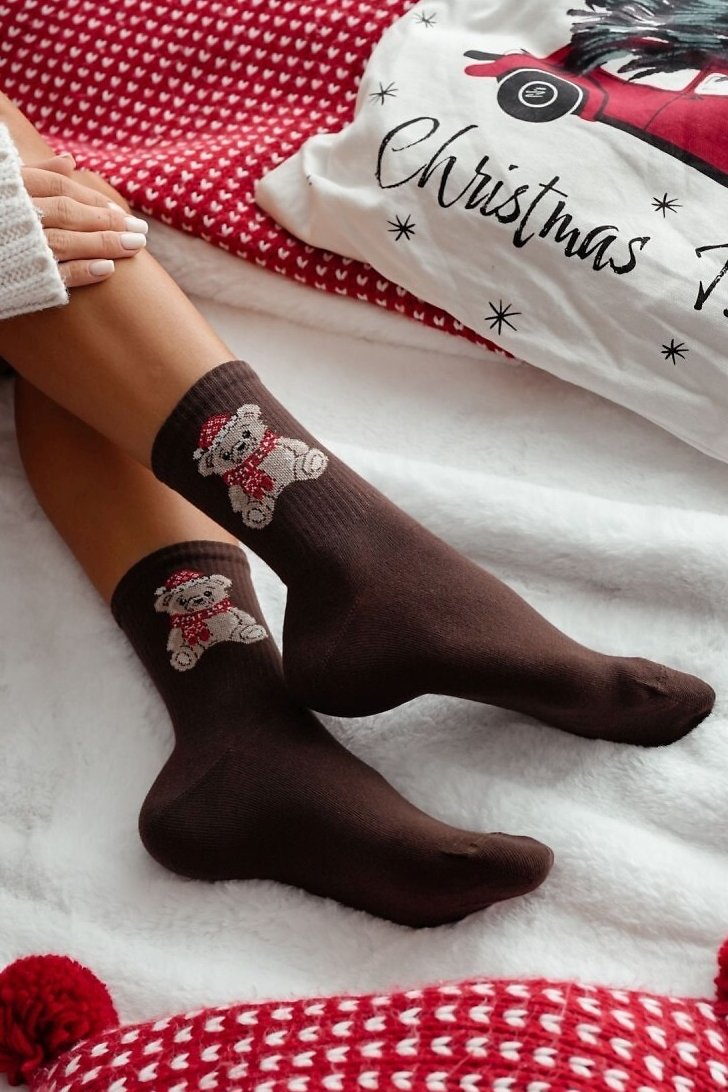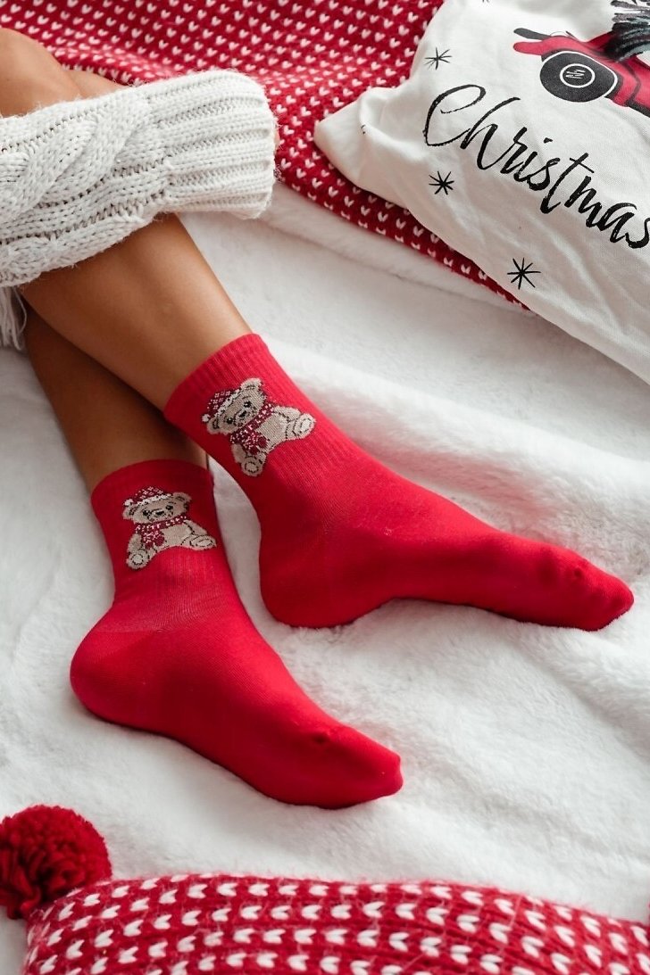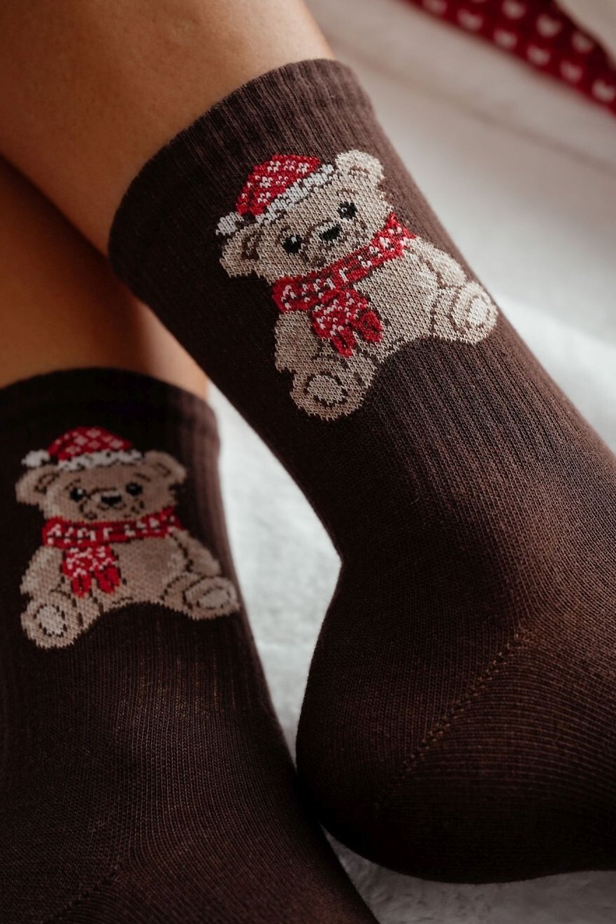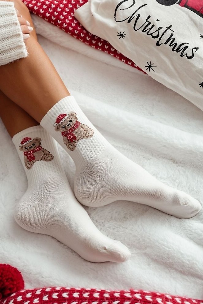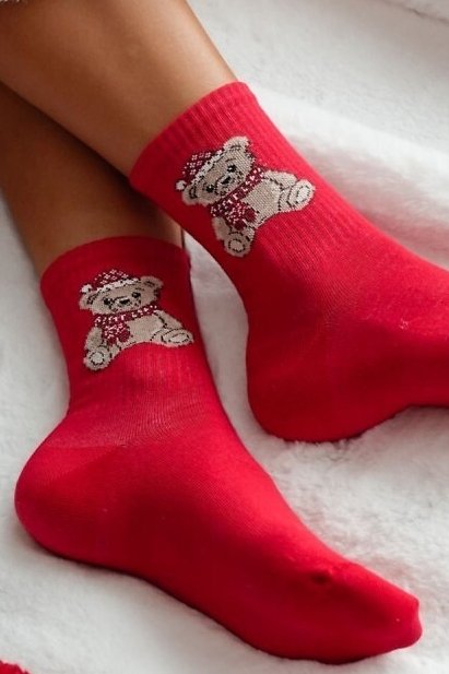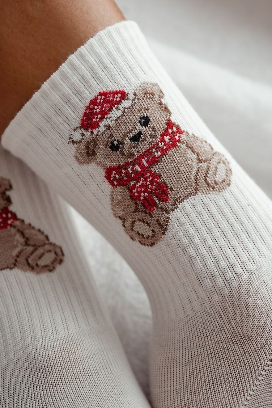 Roztomilé dámské ponožky s vánočním motivem medvídka vnesou do vašeho outfitu hravý a sváteční nádech. Jsou vyrobené z příjemné, kvalitní bavlny s příměsí elastanu, díky čemuž se skvěle přizpůsobí noze a zajistí výjimečné pohodlí. Ozdobný lem s motivem medvídka dodává ponožkám zimní kouzlo a jemně je odlišuje od klasických modelů. Ideální pro každodenní nošení během chladnějších dnů nebo jako milý dárek, který zahřeje i potěší.