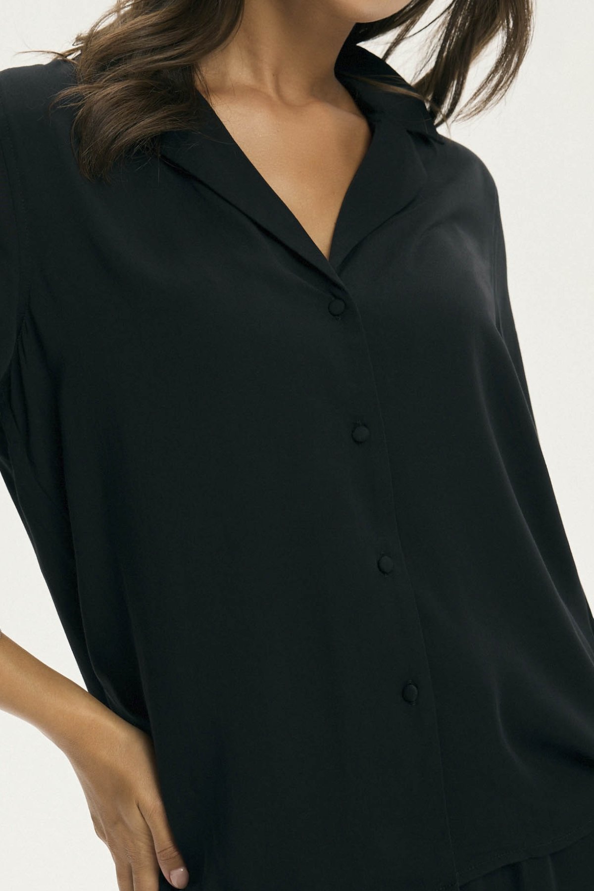 Černý odstín dodává modelu sofistikovaný charakter a dělá z něj univerzální kousek. Pyžamo Cotti je ideální pro ty, které hledají vkusné a pohodlné noční oblečení, v němž se budou cítit výjimečně každý den.
