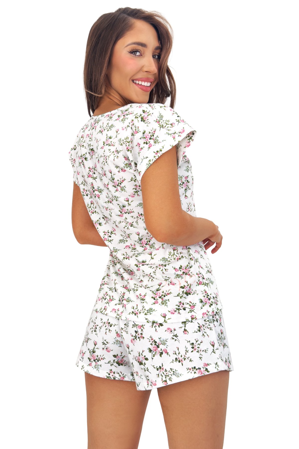 Dámské pyžamo Emilka Short spojuje pohodlný bavlněný materiál s jemným květinovým vzorem. Tričko s krátkým rukávem doplňují krátké šortky klasického střihu, které dobře sedí a neomezují v pohybu. Celkový vzhled doplňuje ozdobná mašlička v pase. Díky 100% bavlně je pyžamo příjemné na nošení a vhodné pro každodenní odpočinek i spánek.