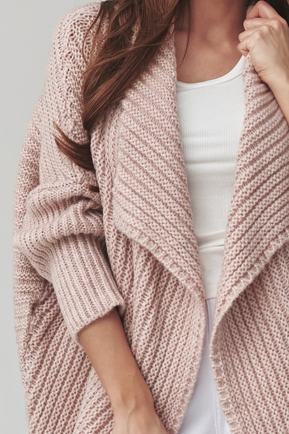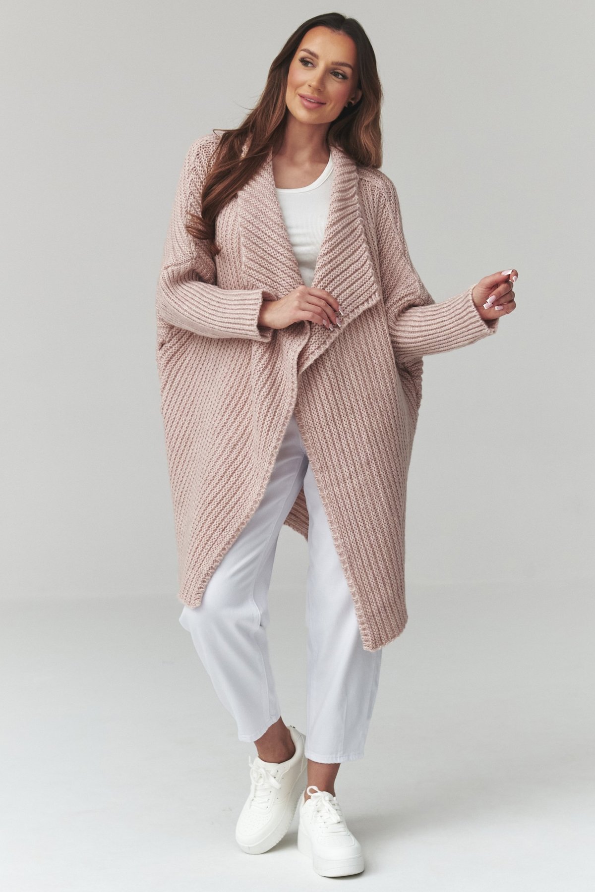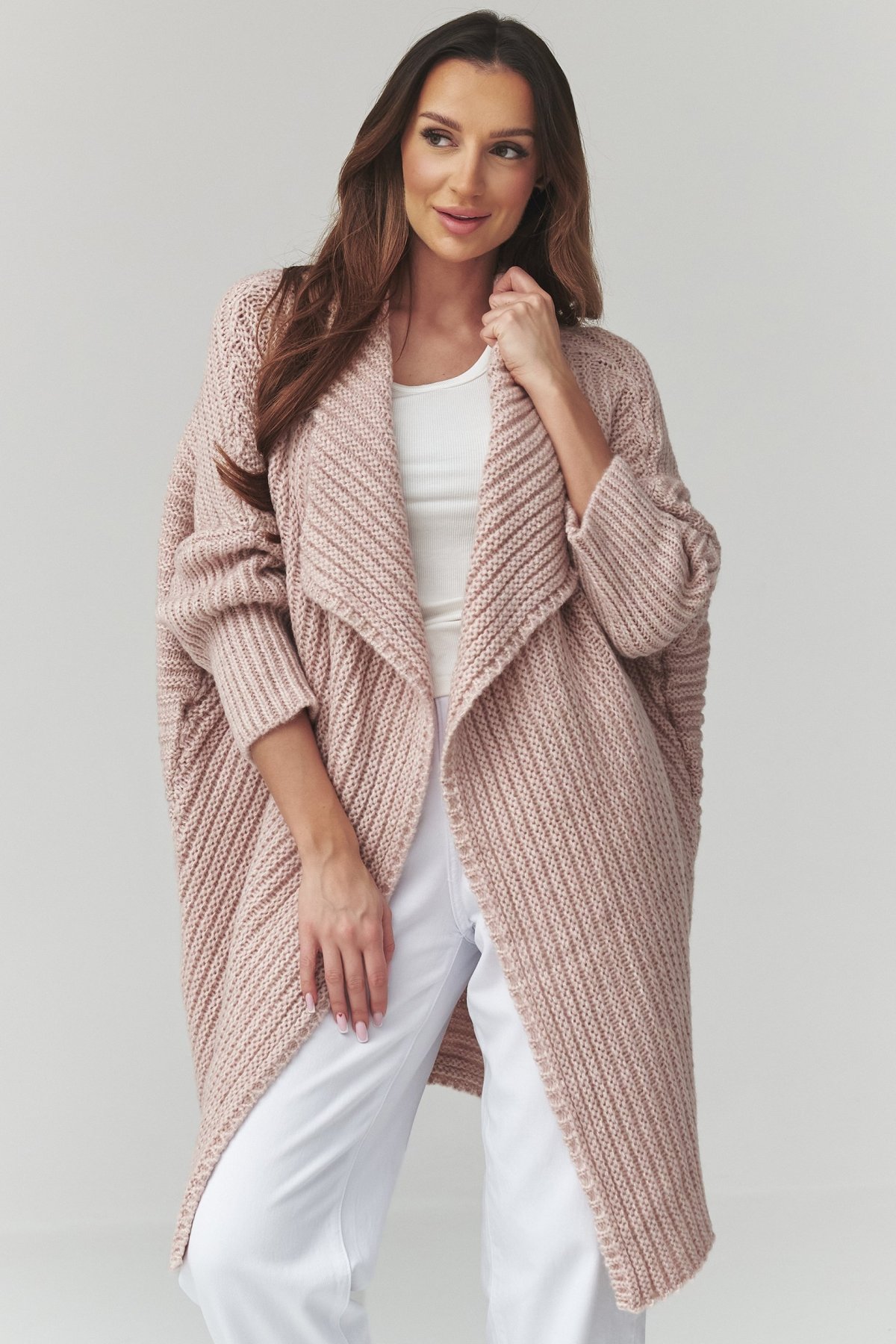 Dlhý dámsky kardigán v staroruzovej farbe. Kúsok, ktorý spája pohodlie s uvoľnenou eleganciou.