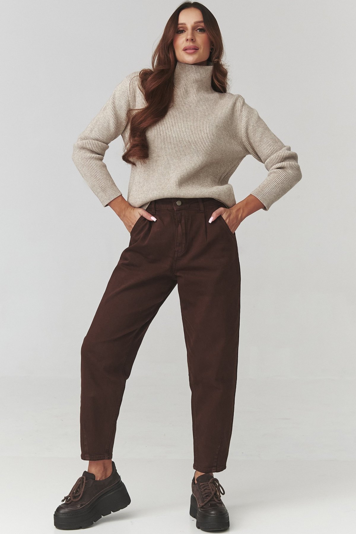 Dámsky sveter s rolákom C20 - tm. hnedý