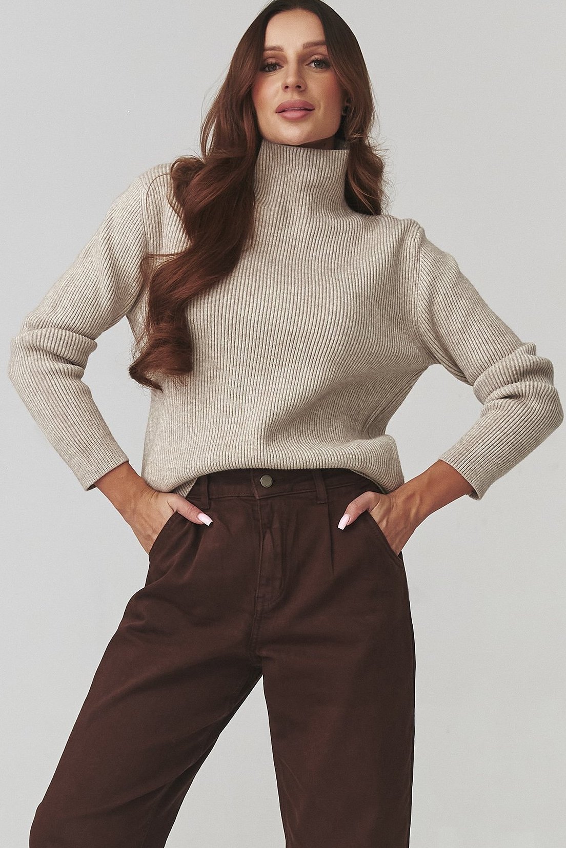 Zvoľte nadčasovú eleganciu v minimalistickom štýle. Dámsky sveter s rolákom v béžovom odtieni je ideálnym kúskom do chladnejších dní. Jemná, rebrovaná štruktúra dodáva svetru moderný vzhľad a pružný úplet sa krásne prispôsobí postave bez toho, aby obmedzoval v pohybe.