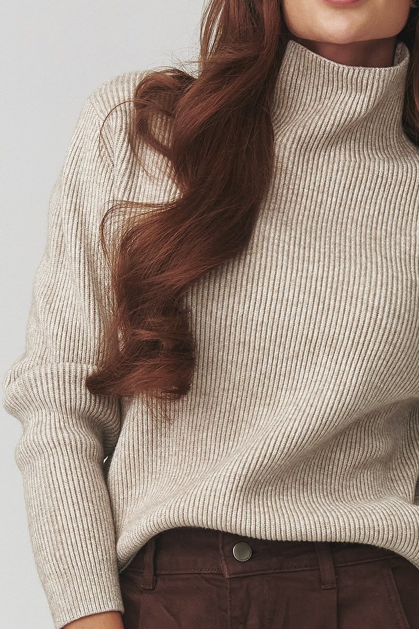 dámsky sveter voľnejšieho strihu s rolákom jemná rebrovaná štruktúra materiálu mäkký, pružný materiál príjemný na…
