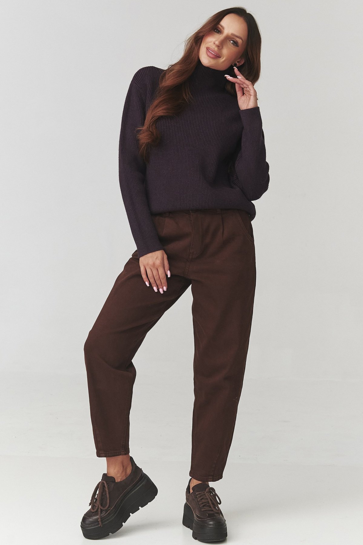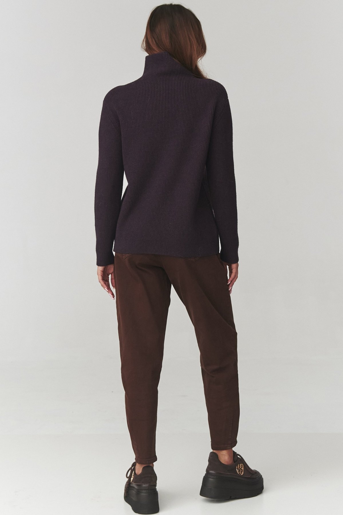 Dámsky sveter s rolákom C20 - hnedofialový
