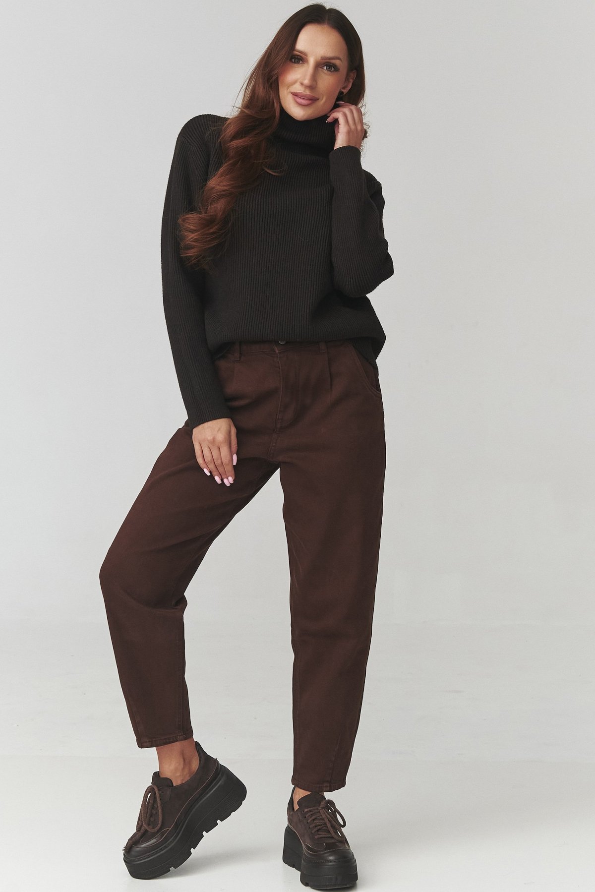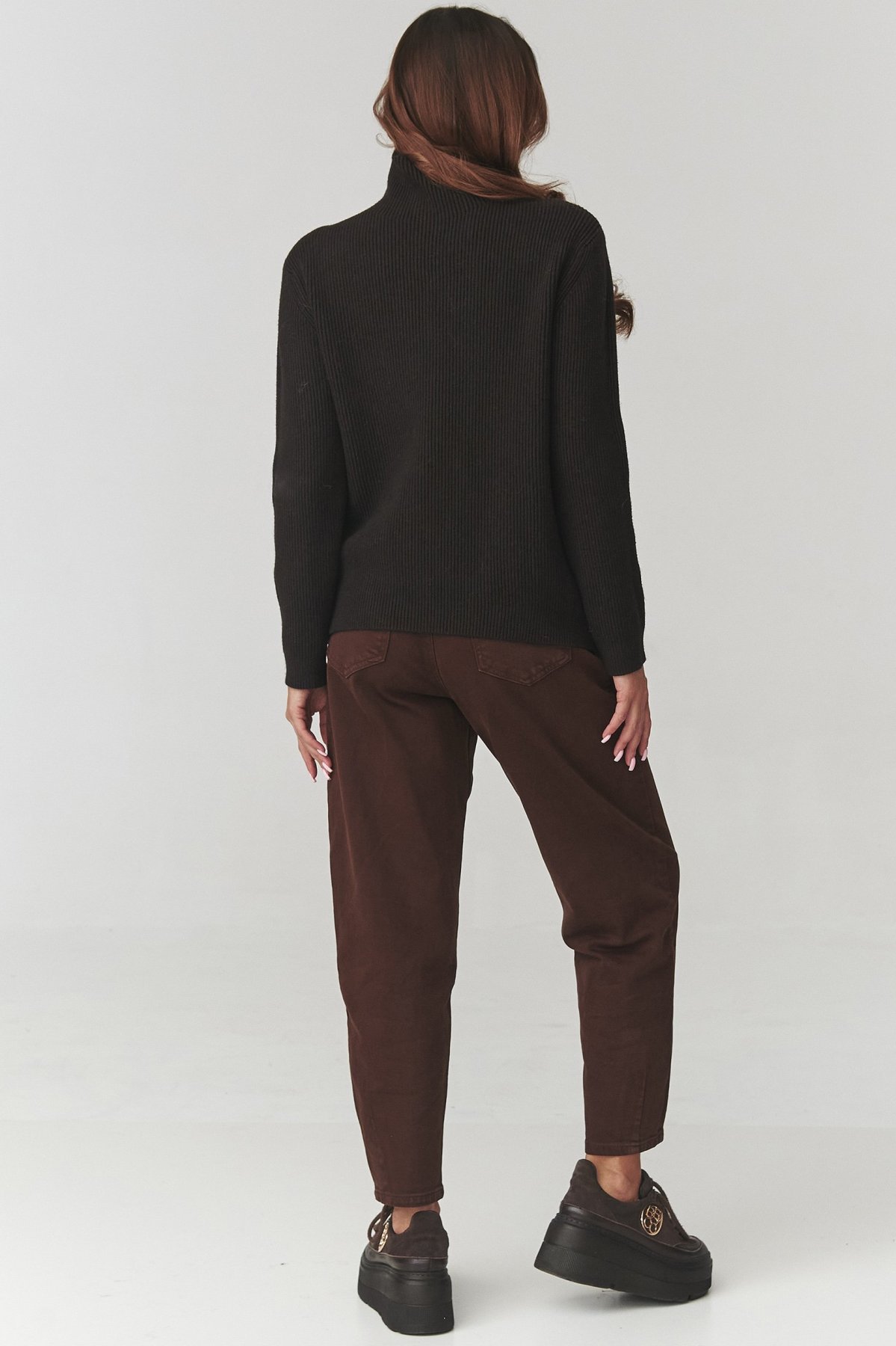 Dámsky sveter s rolákom C20 - tm. hnedý