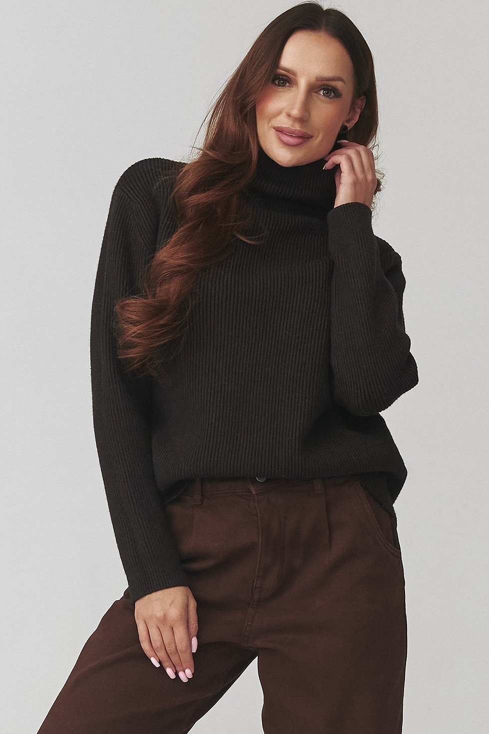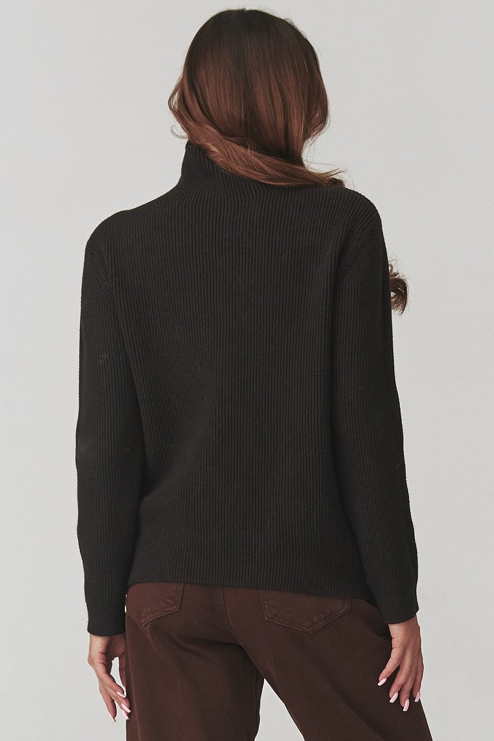 Zvoľte nadčasovú eleganciu v minimalistickom štýle. Dámsky sveter s rolákom v tmavohnedom odtieni je ideálnym kúskom do chladnejších dní. Jemná, rebrovaná štruktúra dodáva svetru moderný vzhľad a pružný úplet sa krásne prispôsobí postave bez toho, aby obmedzoval v pohybe.