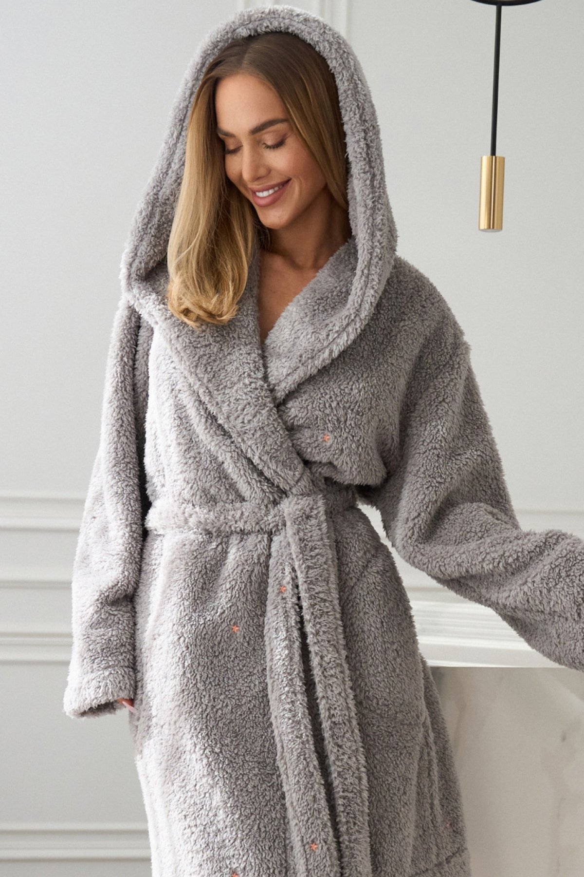 - dámsky župan z mäkkej, hrejivej tkaniny
