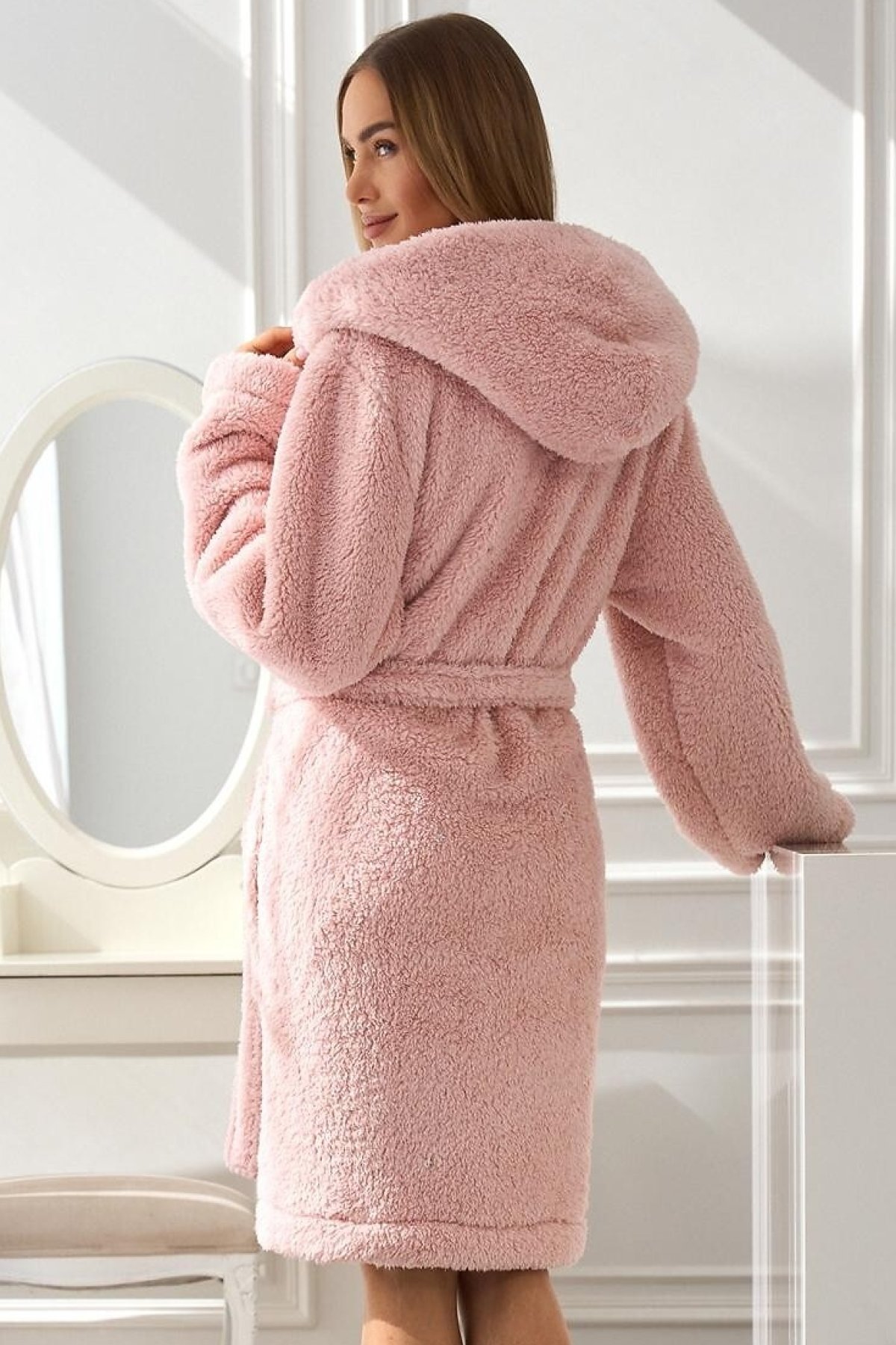 Dámsky župan Liv je ideálnym spoločníkom pre domáci relax aj chladné rána. Je vyrobený z charakteristickej, mäkkej úpletovej látky, ktorá poskytuje hrejivosť a komfort pri každom nosení. Praktická kapucňa dodáva modelu ležérny charakter a chráni pred chladom, zatiaľ čo dĺžka nad kolená zaisťuje voľnosť pohybu a moderný vzhľad. Zaväzovanie v páse umožňuje prispôsobiť župan postave, zvýrazniť siluetu a cítiť sa pohodlne. Bočné vrecká sú praktickým prvkom, ktorý oceníte každý deň. Tento župan spája funkčnosť so ženským štýlom a stane sa vaším obľúbeným kúskom pre chvíle domácej pohody.