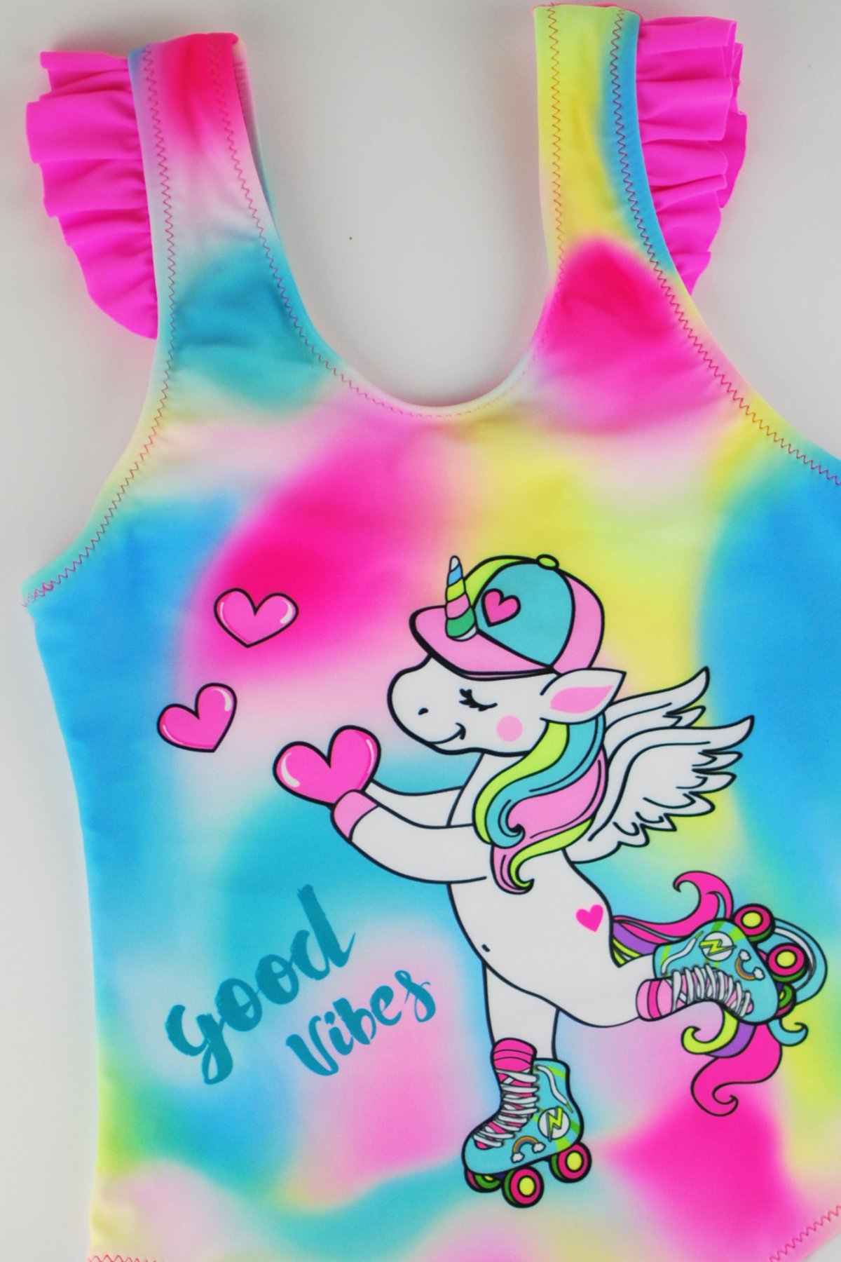 Dievčenské jednodielne plavky s jednorožcom KD001