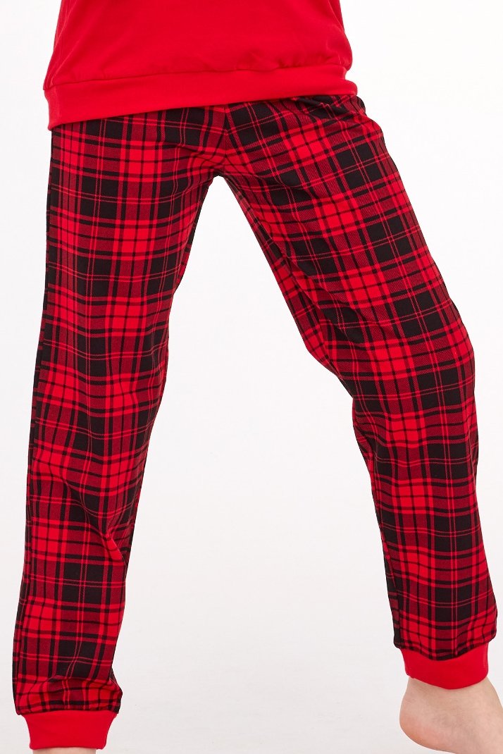 Horní díl s dlouhým rukávem a barevným potiskem působí vesele a svátečně, zatímco kostkované kalhoty dodávají celku klasický zimní nádech. Díky kvalitní bavlně je pyžamo měkké, příjemné na pokožce a zajišťuje volnost pohybu i při spánku. Pružné manžety na rukávech a nohavicích se postarají o perfektní padnutí a komfort.
