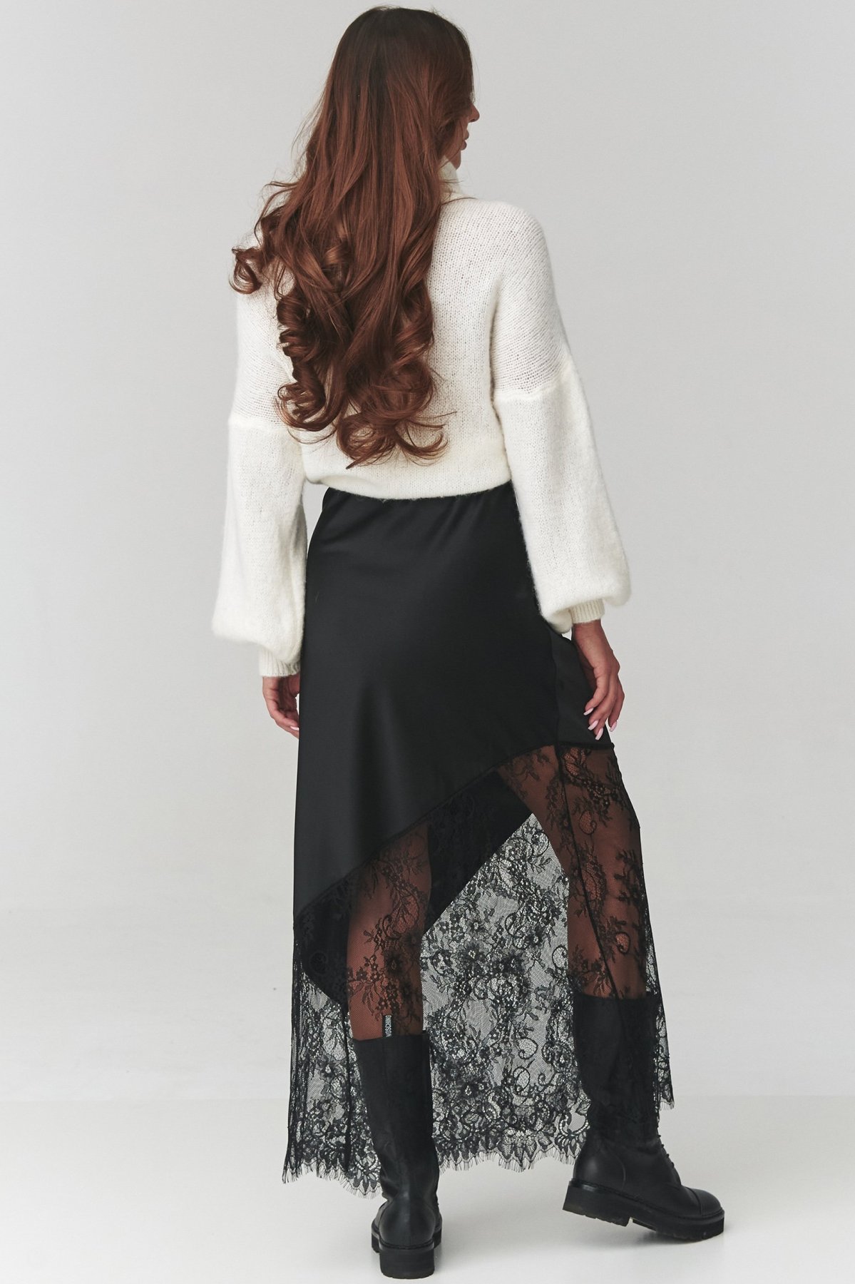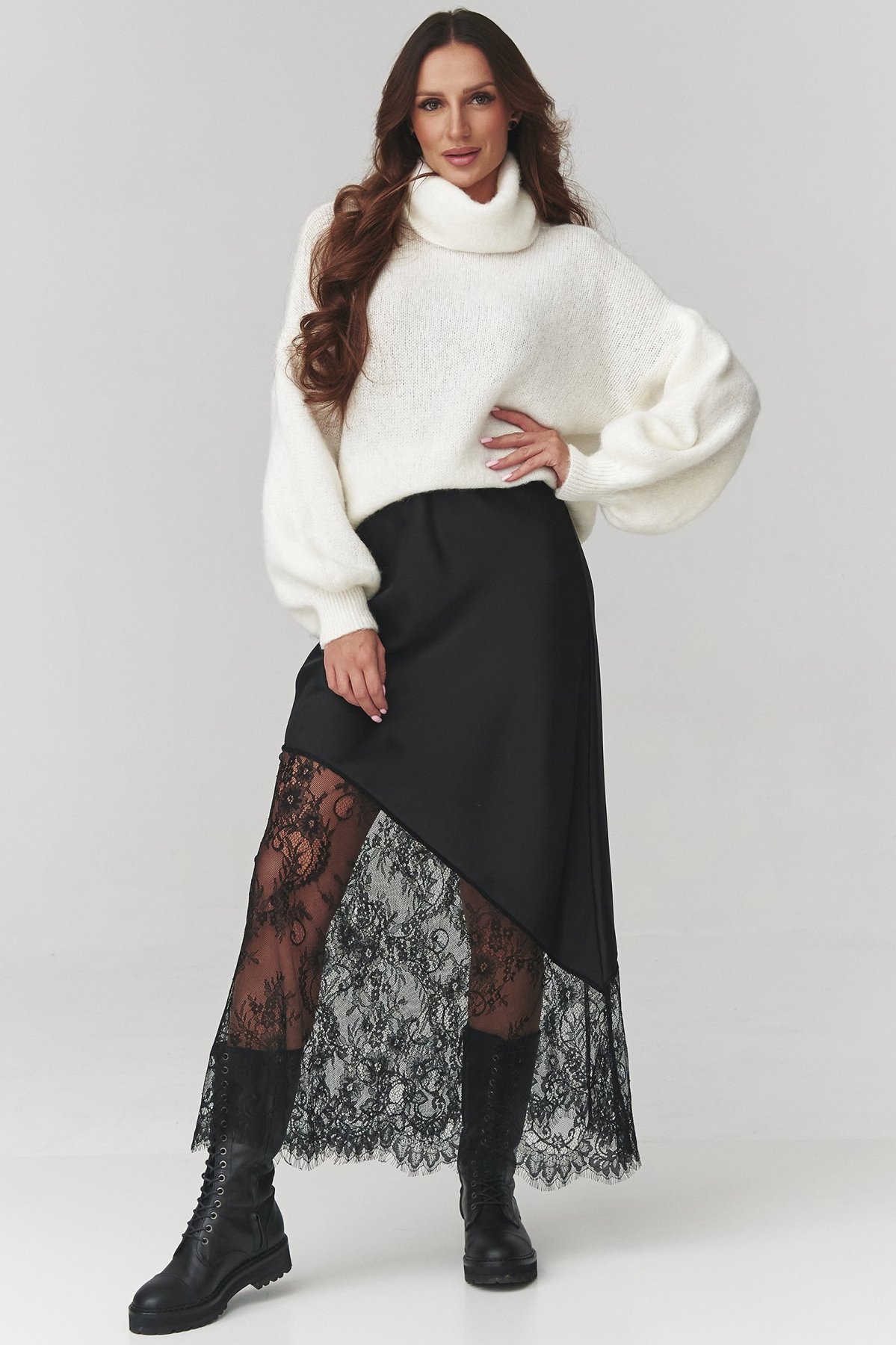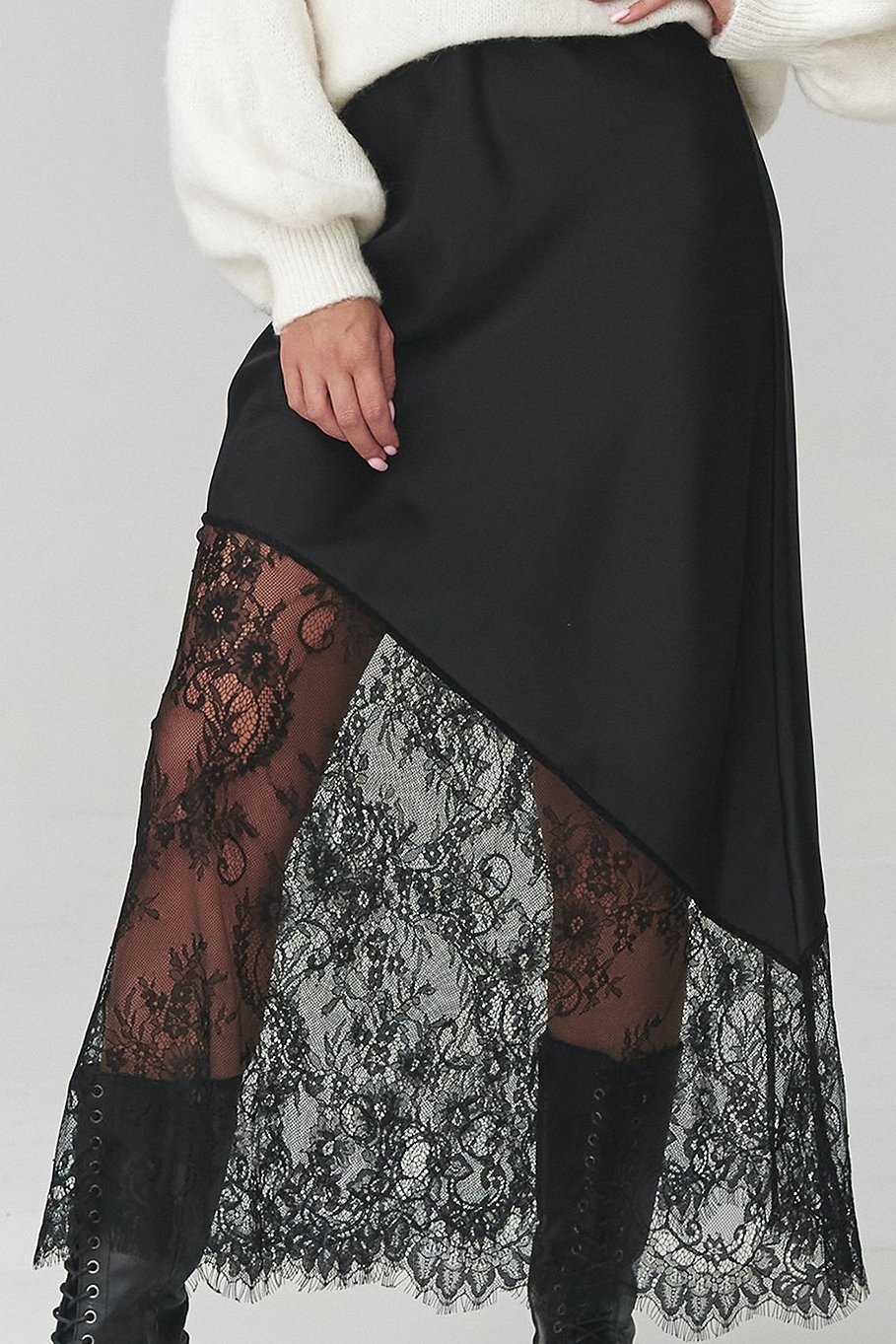 Elegantná dámska sukňa s čipkovým lemom v čiernom vyhotovení je ideálna pre ženy, ktoré hľadajú kombináciu ženskosti a komfortu. Jemná čipka dodáva modelu sofistikovaný vzhľad, zatiaľ čo jednoduchý strih krásne zvýrazňuje postavu.