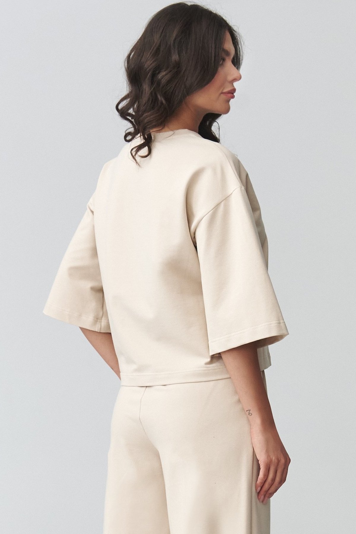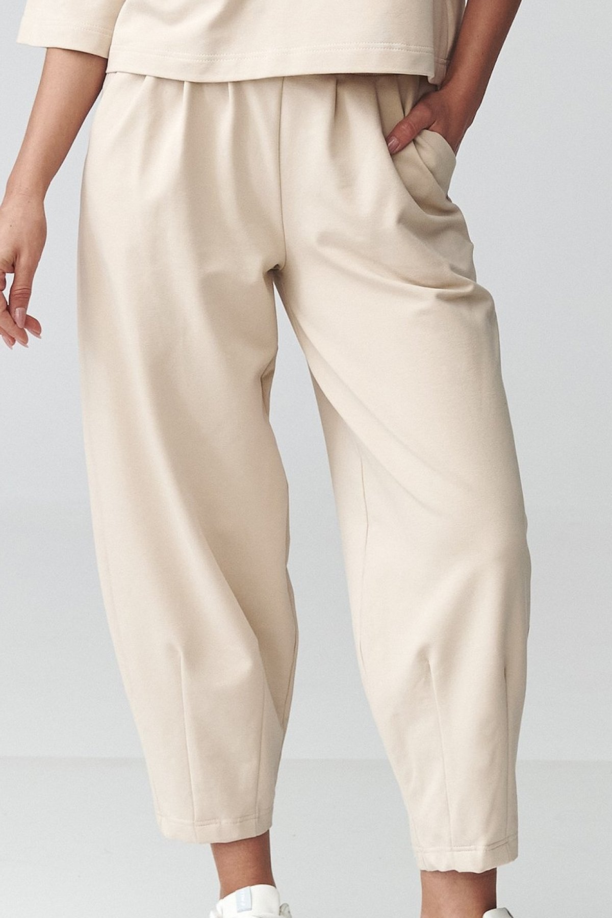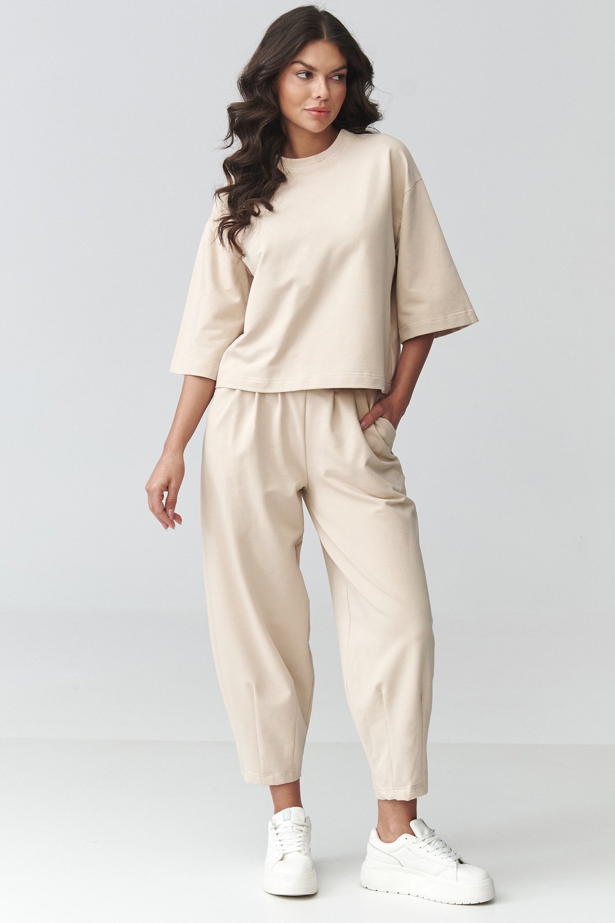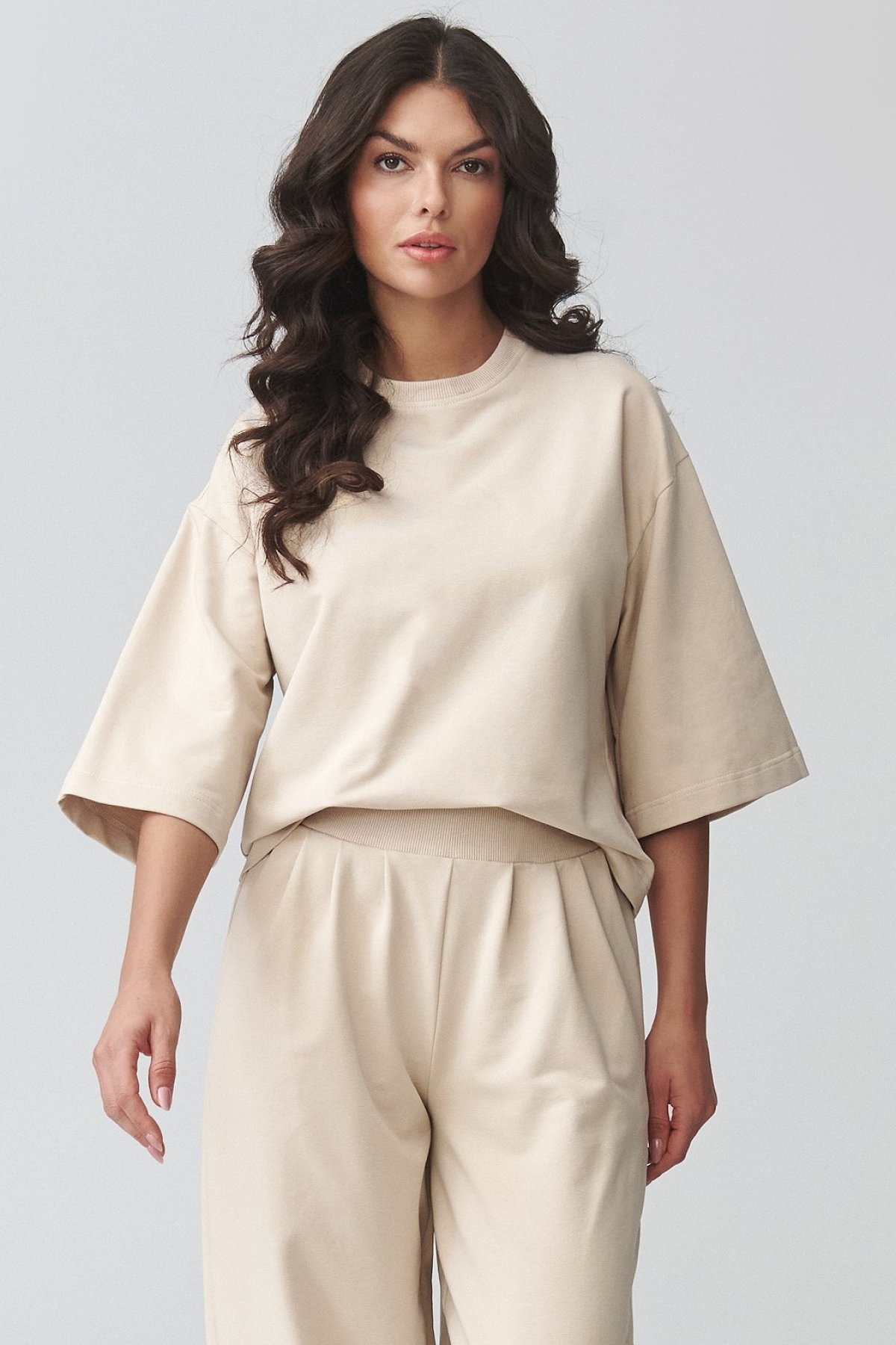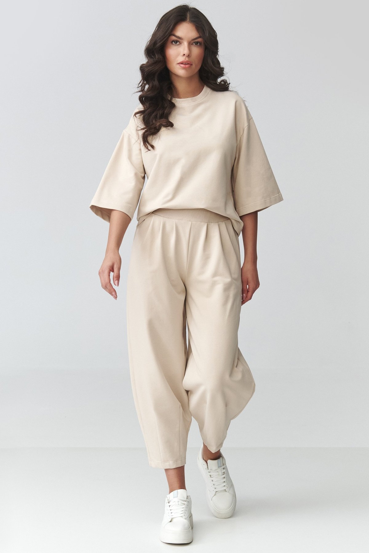 Dámská souprava světle béžové barvy spojující uvolněný vzhled s pohodlím, které oceníte při každodenním nošení.