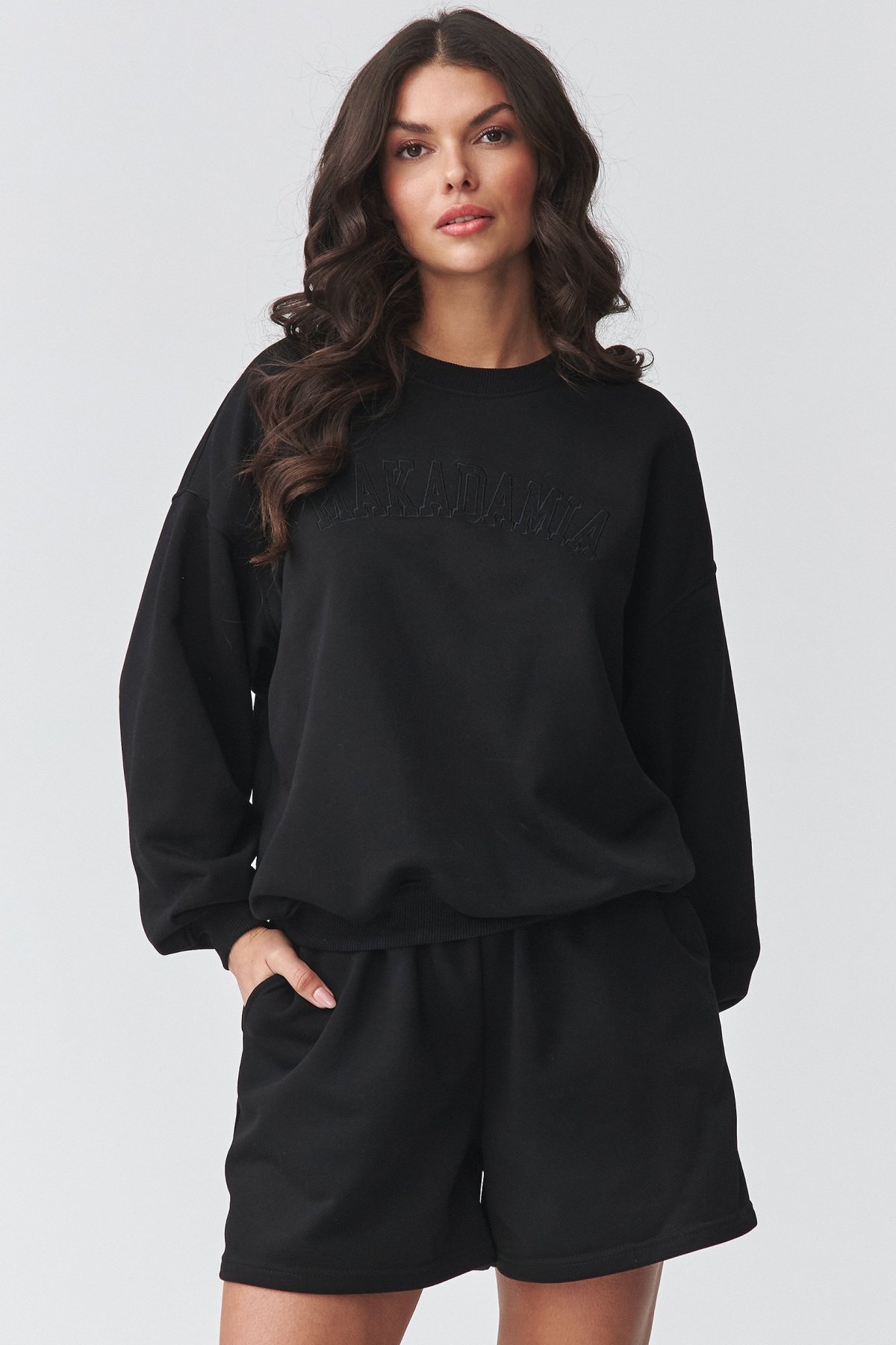 Pohodlný základ pro dny, kdy chcete vypadat upraveně a zároveň se cítit svobodně. Volnější mikina s jemnou výšivkou působí čistě a moderně, zatímco šortky s vyšším pasem vytvářejí vyváženou siluetu a dobře sedí při pohybu. Mikina má ležérní střih, spadlá ramena a pečlivě zakončené lemy, takže celek působí uvolněně, ale ne neupraveně. Šortky s elastickým pasem se snadno přizpůsobí postavě a díky měkkému materiálu s podílem elastanu jsou příjemné při celodenním nošení. Tento komplet se hodí na doma, na cestu i na běžné pochůzky ve městě. Se sneakers vytvoří nenucený outfit, jednotlivé díly ale snadno využijete i samostatně.