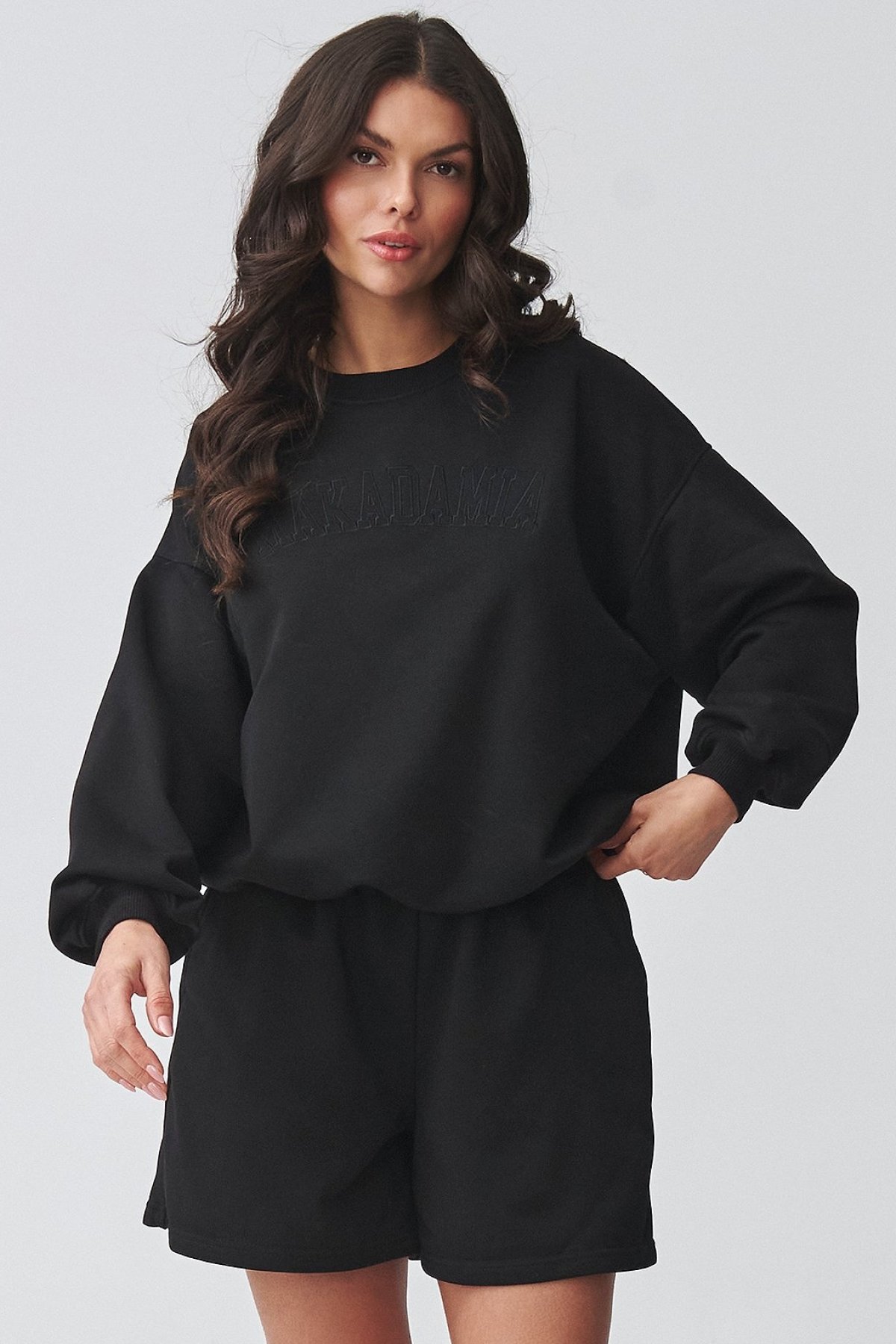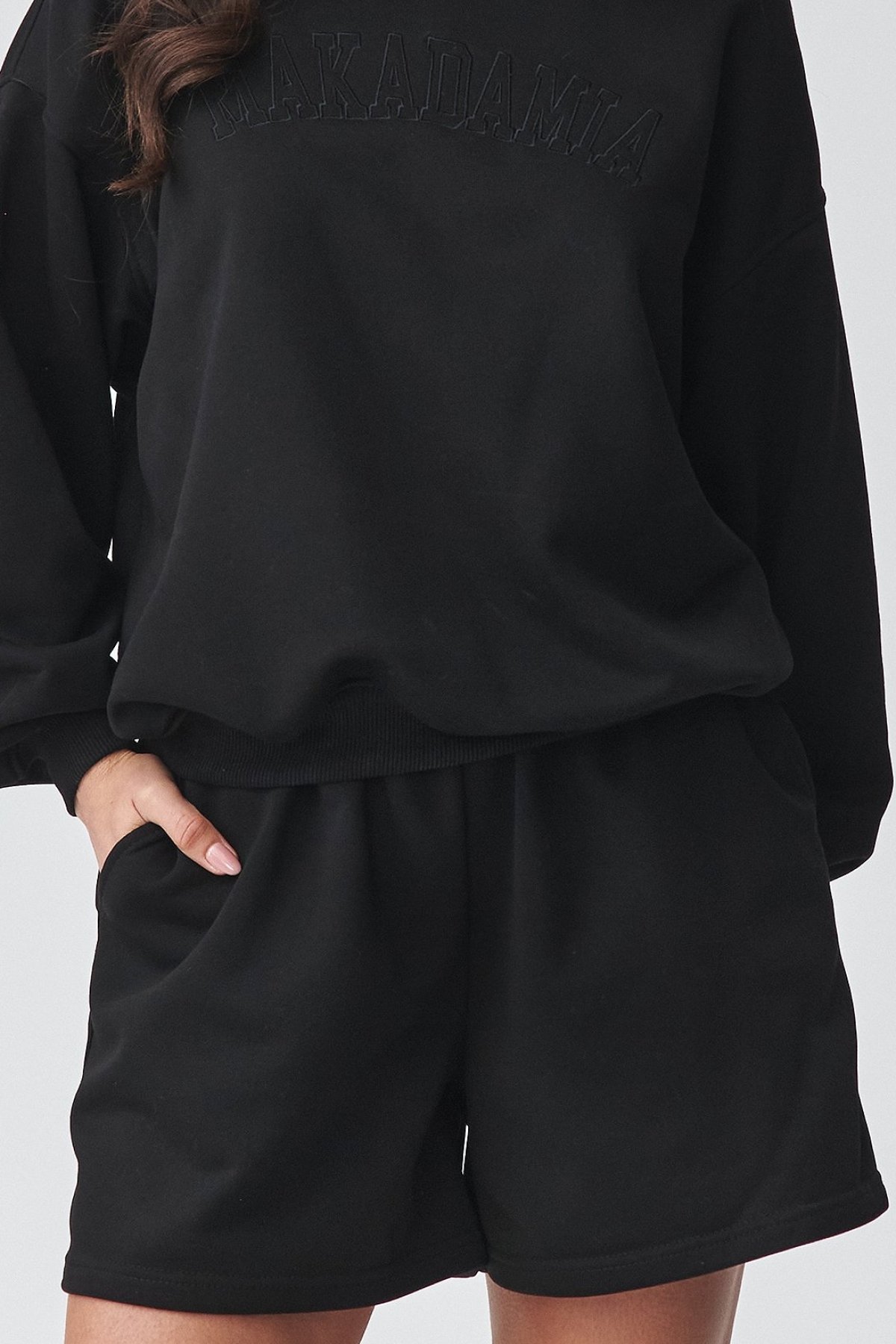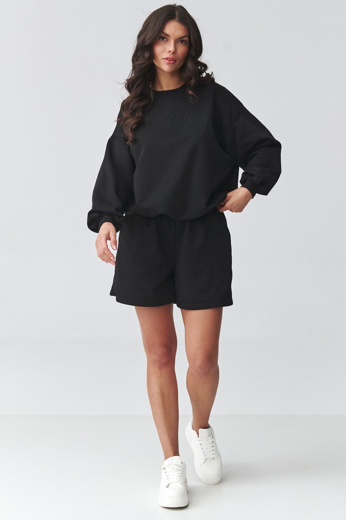 Dámský oversize komplet černé barvy se šortkami.