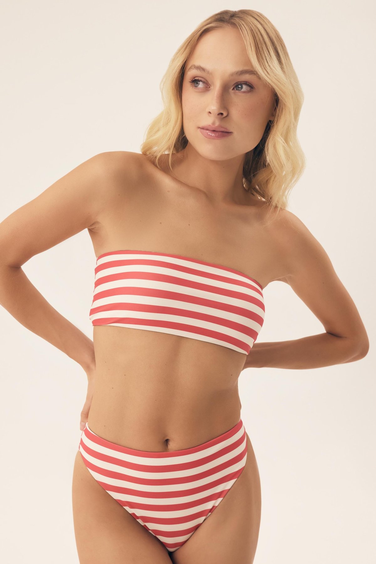 Vrchní díl plavek Bloovii Malibu zaujme čistým minimalistickým vzhledem s jemným retro nádechem. Bandeau střih bez ramínek dobře přiléhá k tělu, nechává vyniknout ramenům a je vhodný i na opalování. Kontrastní pruhy dodávají modelu výraznější charakter, zatímco jednoduché provedení usnadňuje kombinování s různými spodními díly plavek.