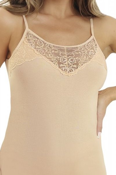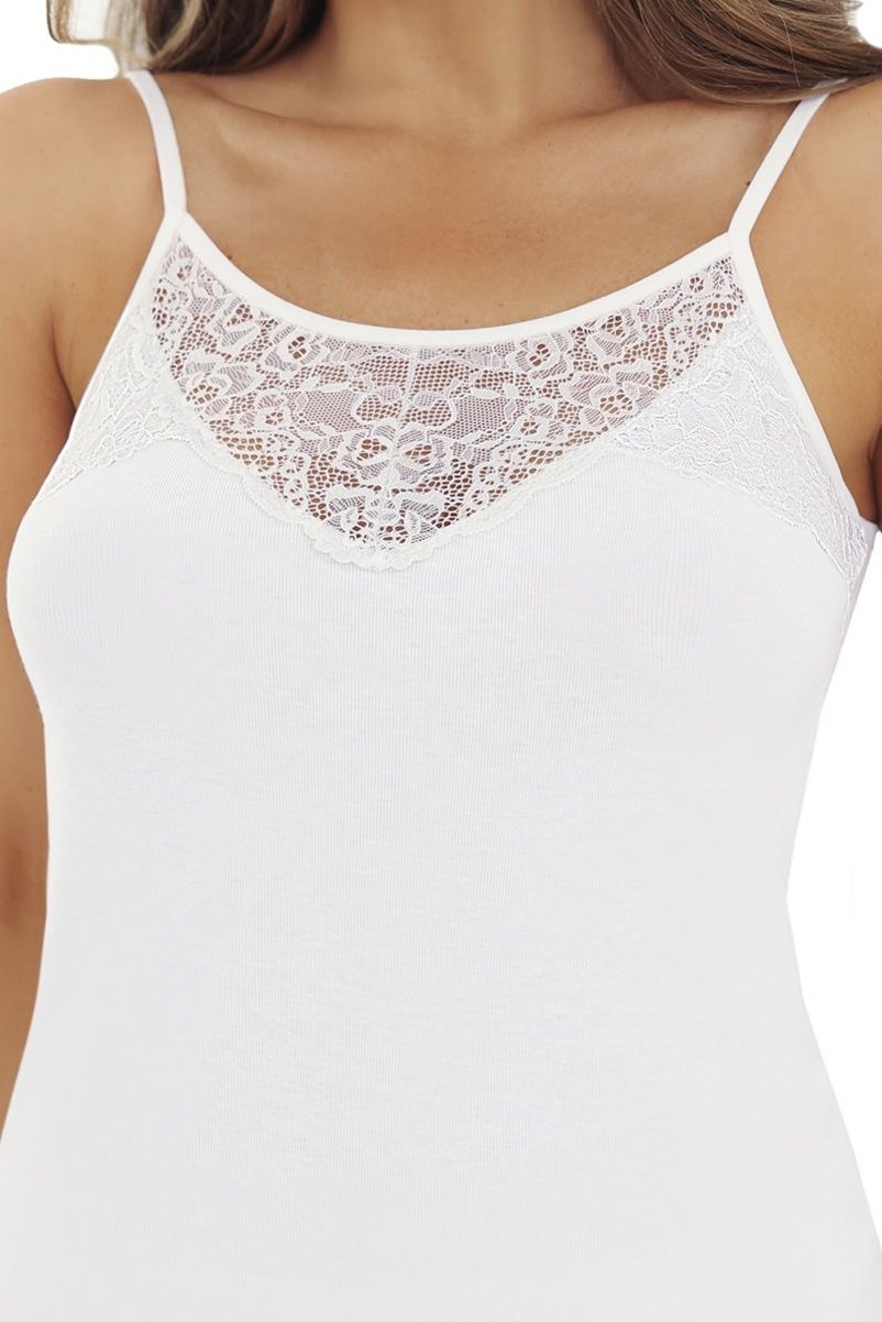Košilka CAPRICE je bavlněný basic, který má navíc elegantní detail. Hladké tělo z čisté bavlny se nosí pohodlně celý den, dobře dýchá a je šetrné i k citlivější pokožce. Krajka v oblasti dekoltu zjemní vzhled a dodá kousku nenápadnou ženskost, takže košilku využijete nejen pod svetr či košili, ale i samostatně doma nebo v létě pod lehký kardigan. Díky jednoduché linii hezky sedí, nikde zbytečně nepřidává objem a v šatníku se rychle stane kouskem, po kterém budete sahat pořád.