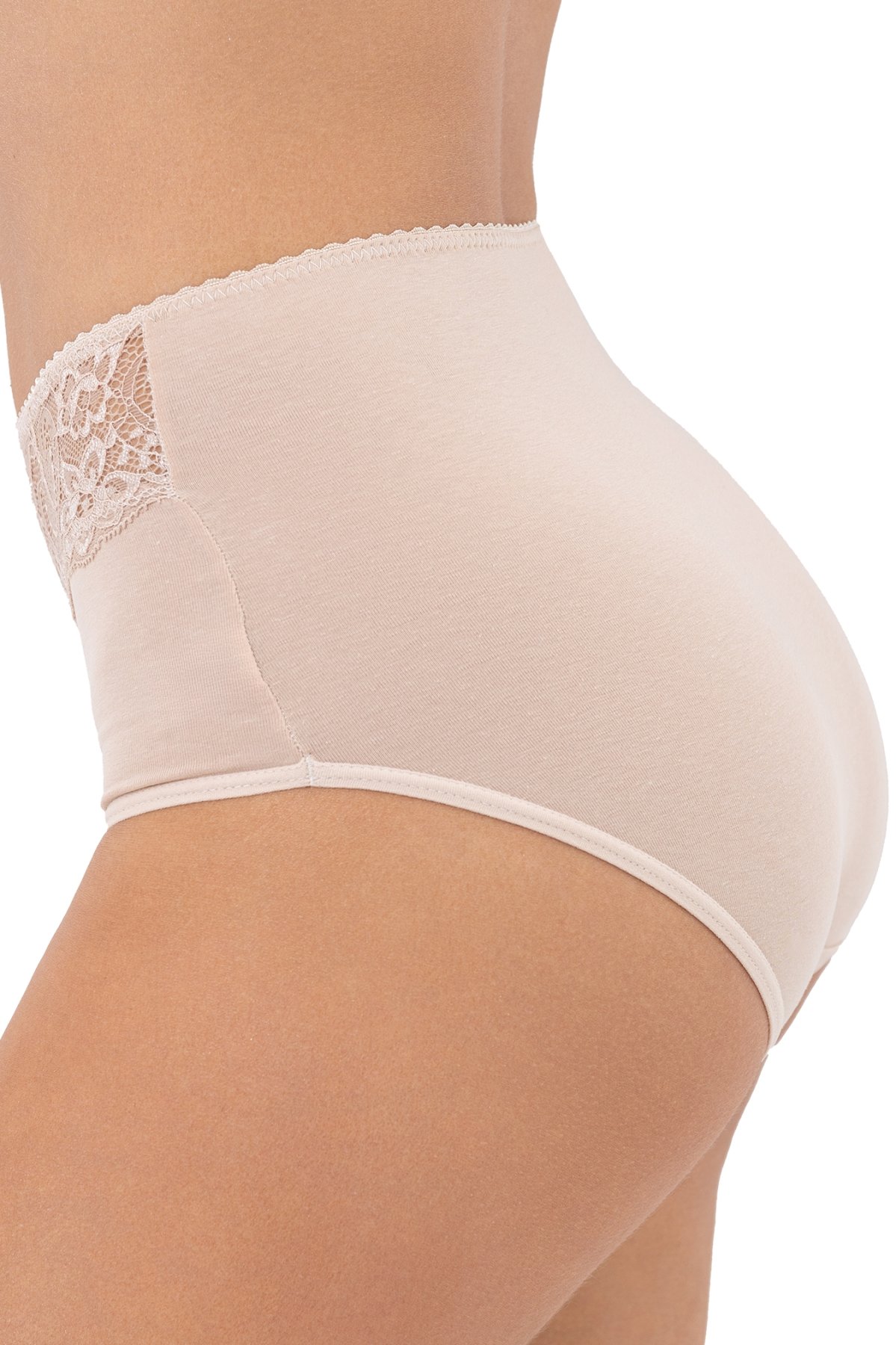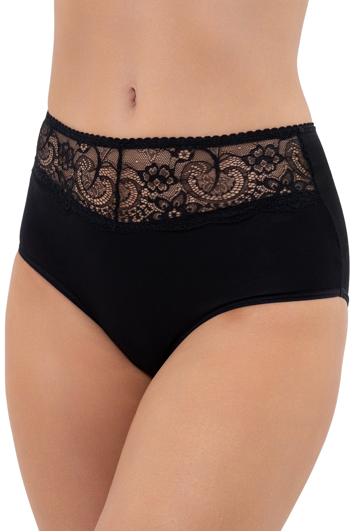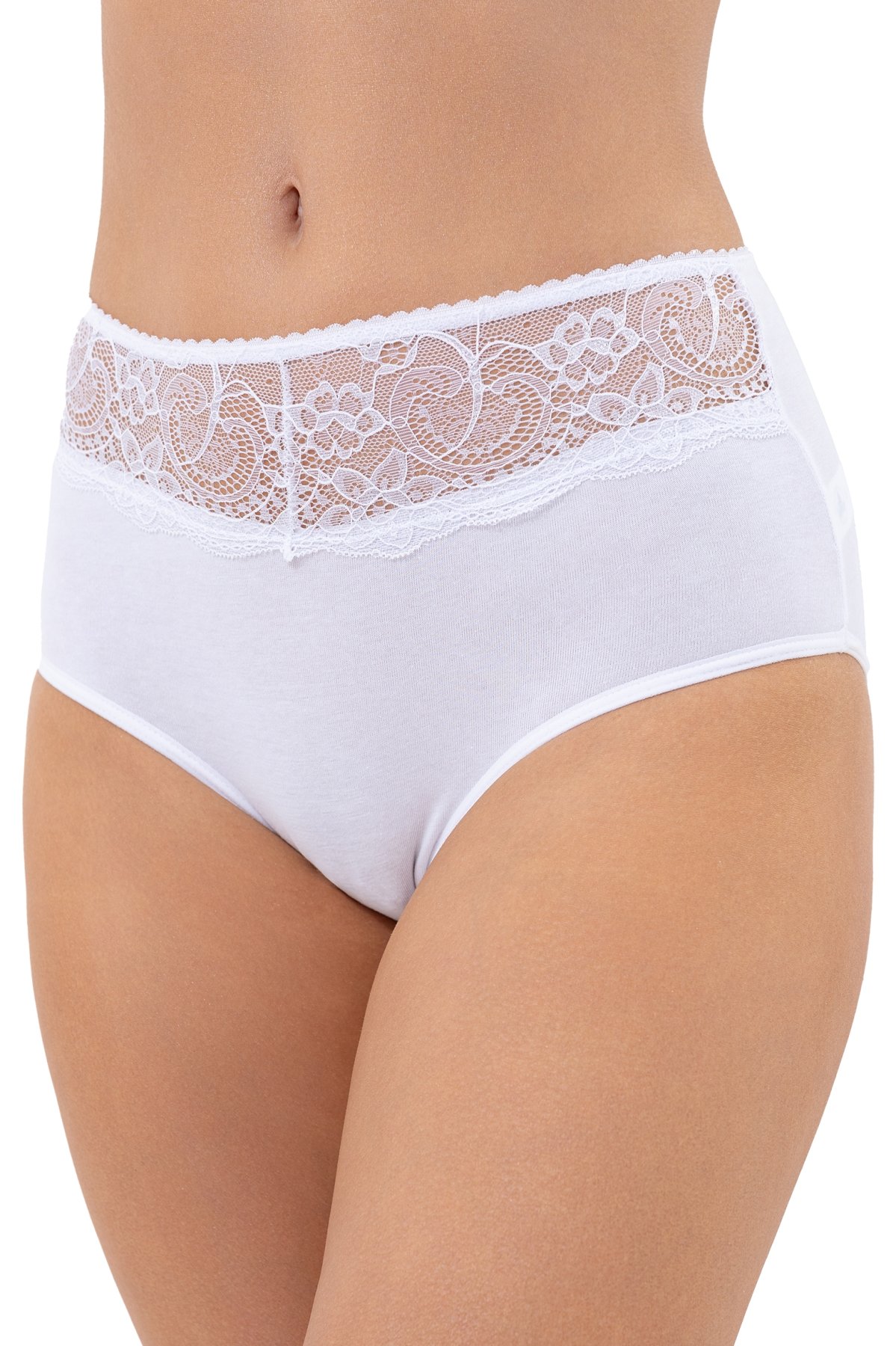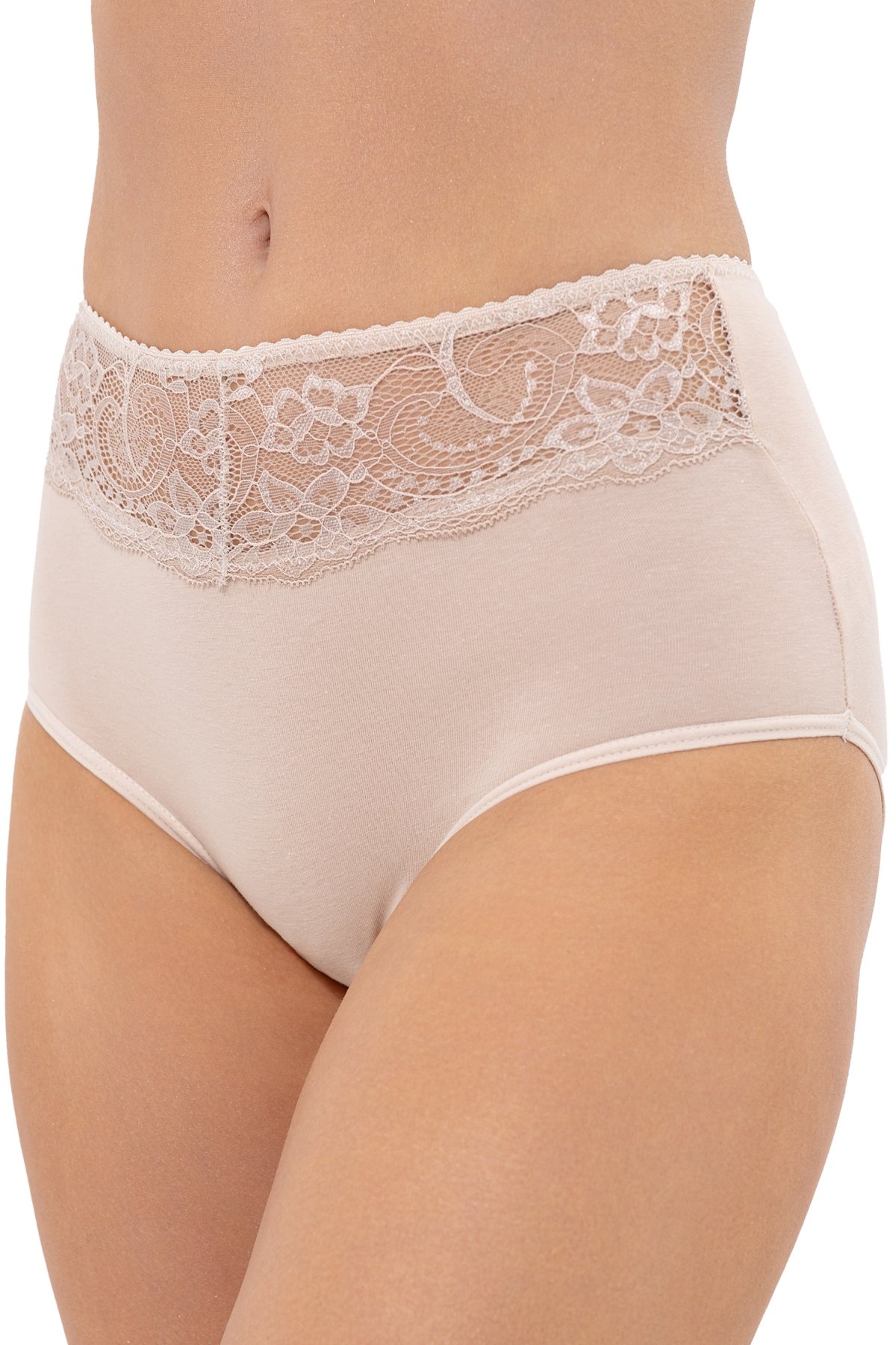 Vyšší strih pekne obopne postavu, dodá vám pocit istoty a zároveň bude príjemný pri každodennom nosení. Decentná čipková aplikácia dodáva nohavičkám zmyselný nádych bez toho, aby uberala na praktickosti. Zadná strana je úplne hladká. Lemy v oblasti pása aj nôh sú zakončené plochými gumičkami.
