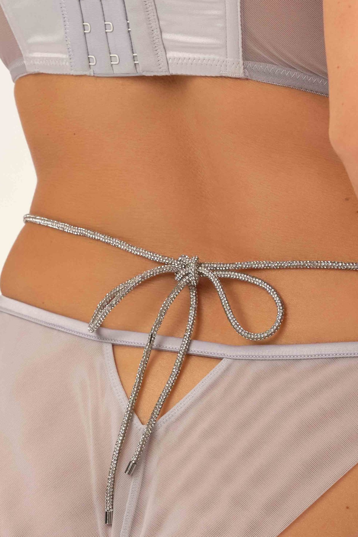 Střih vychází z klasických bikin, ale je ozvláštněn šňůrkami po bocích – ty lze odepnout nebo zavázat vzadu v pase podle toho, jaký efekt chcete vytvořit. Zadní část doplňuje výrazný trojúhelníkový průstřih, který dodává modelu jemně svůdný akcent. Díky propracovanému detailu a kvalitnímu zpracování jsou kalhotky vhodné nejen na speciální příležitosti, ale i jako výrazný kousek do setu s podprsenkou Onyks.