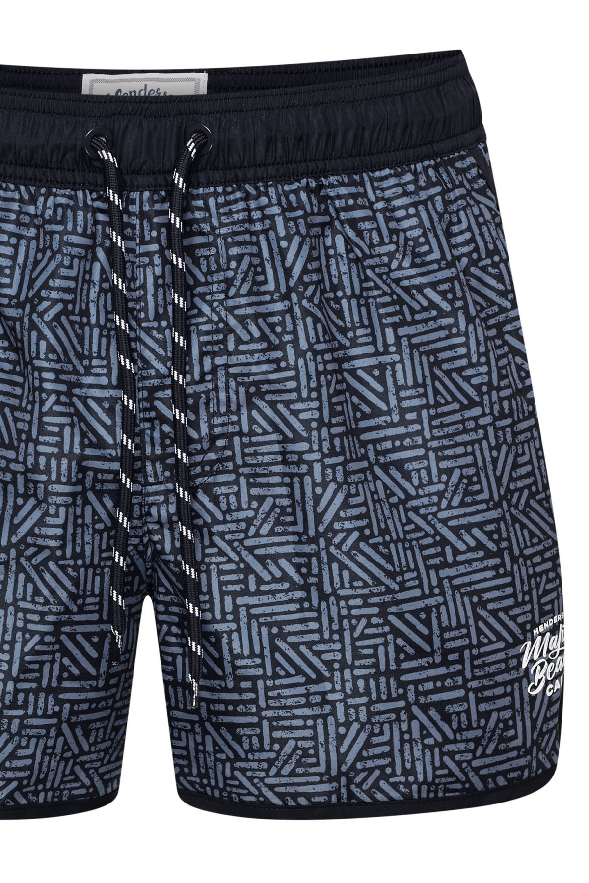 Celoplošný geometrický vzor doplňuje kontrastní lemování a decentní potisk na nohavici, který modelu dodává sportovně ležérní vzhled. Elastický pas se šňůrkou umožňuje snadné přizpůsobení, boční kapsy pak přidávají praktický detail pro každodenní použití. Materiál tvoří 100% polyester.