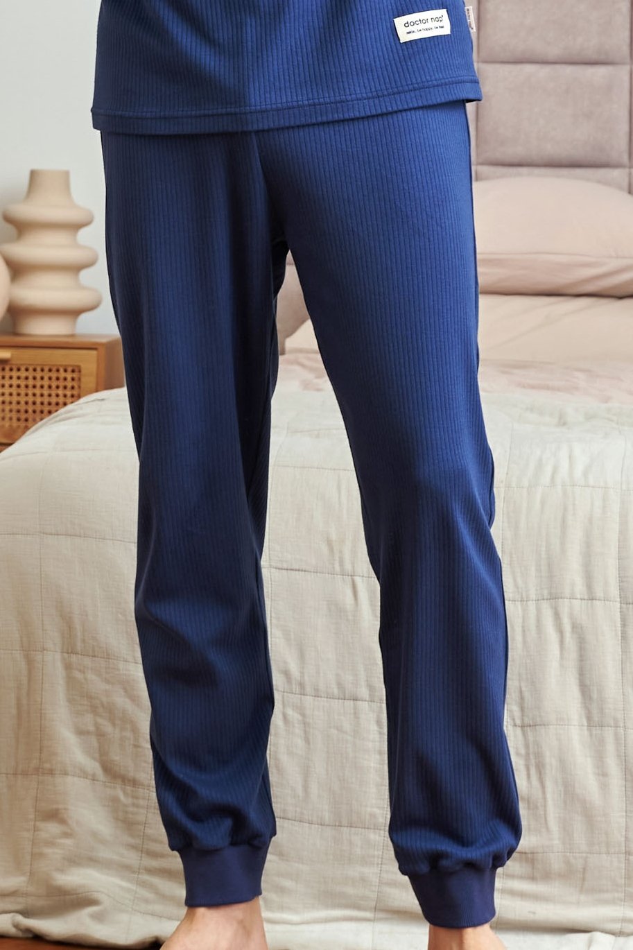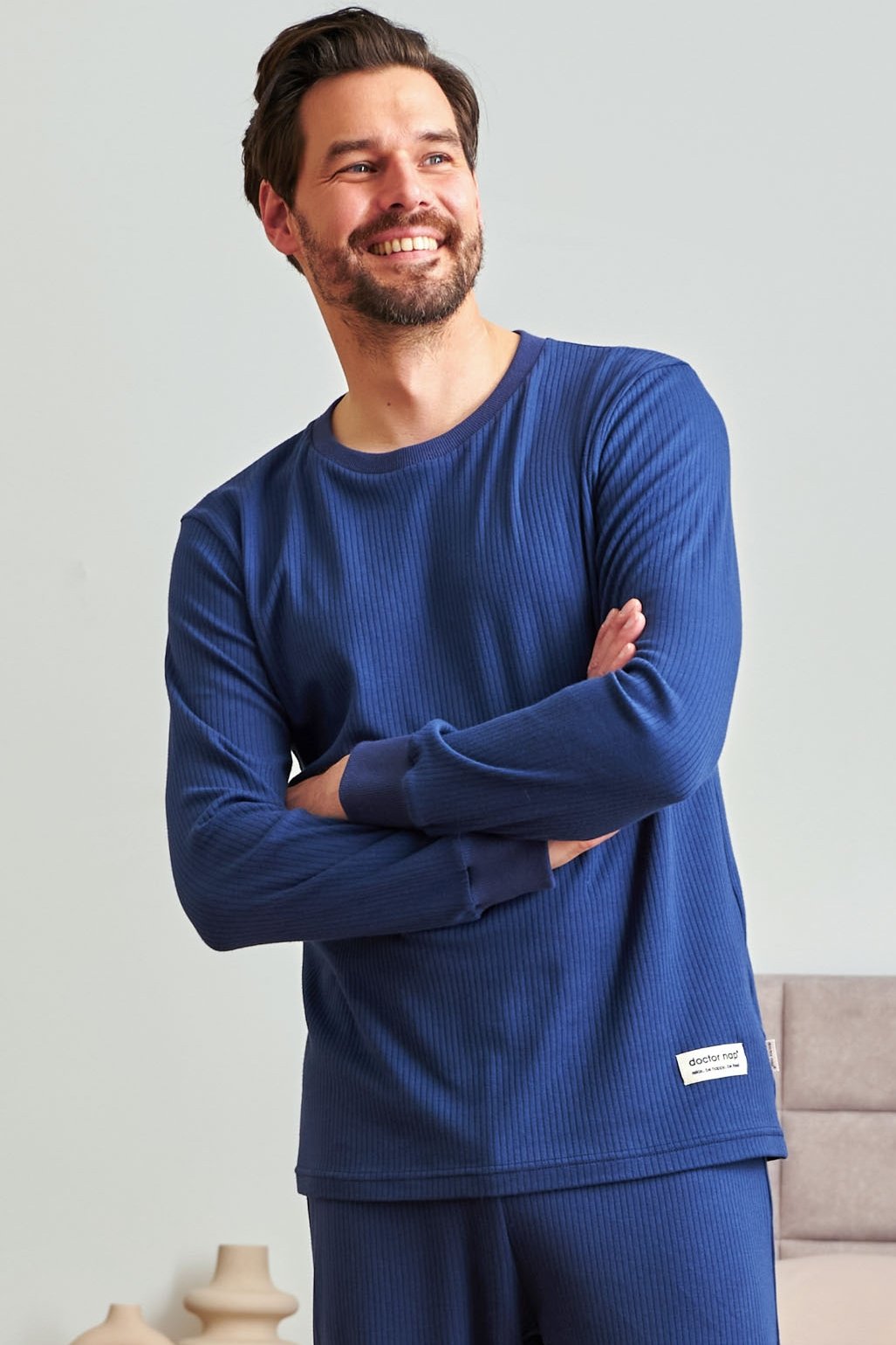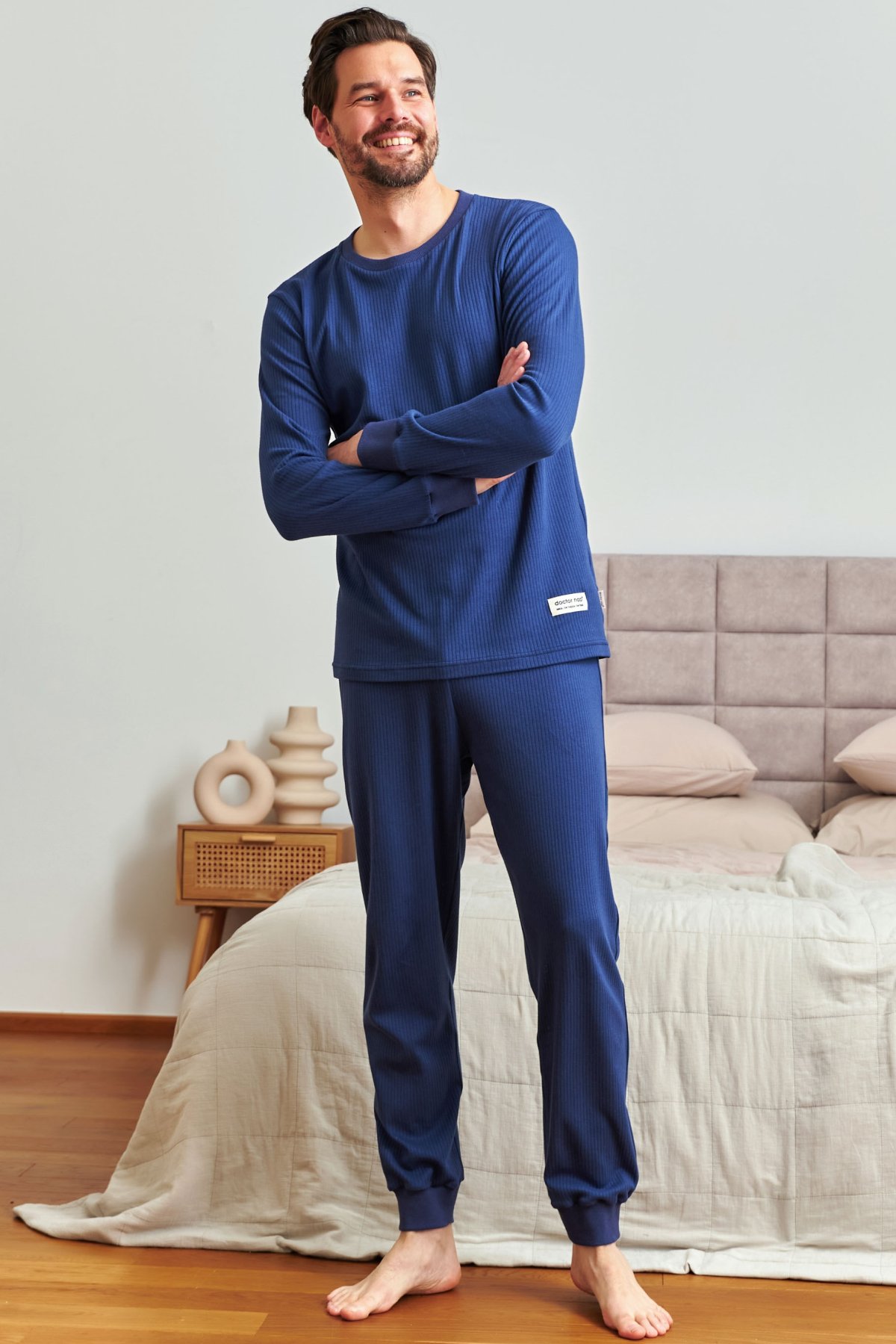 Panské pyžamo spájajúce klasický štýl s výnimočným pohodlím. Je vyrobené z rebrovanej bavlny, ktorá sa prirodzene prispôsobuje telu a zaručuje pohodlie počas spánku aj počas lenivých víkendových rán.