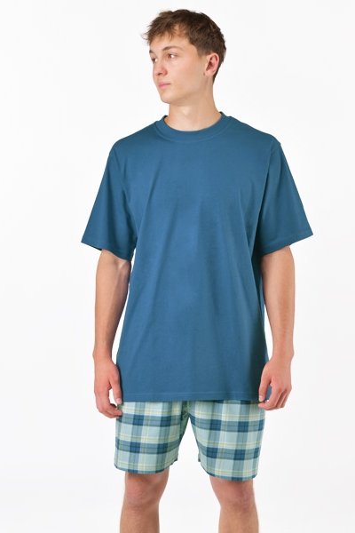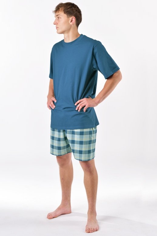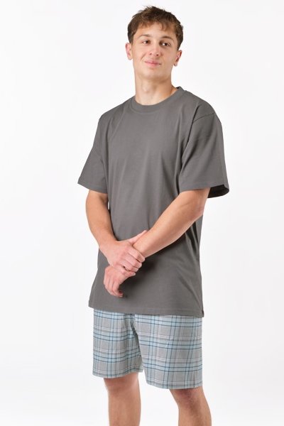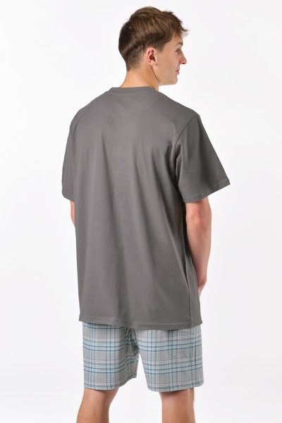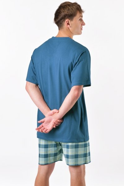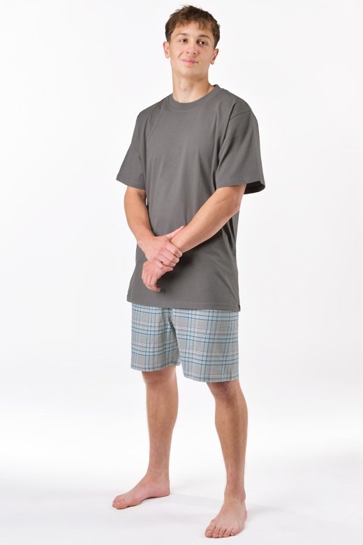 Toto pánské pyžamo spojuje jednoduchost, komfort a klasický styl. Vyrobené ze 100% bavlny, nabízí příjemný pocit na pokožce a dostatečnou prodyšnost i v teplejších nocích. Volný střih zaručuje naprostou volnost pohybu, zatímco krátké rukávy a lehké šortky dodávají lehkost a vzdušnost. Károvaný vzor na kalhotách dodává pyžamu nadčasový vzhled, který nikdy nevyjde z módy. Ideální volba pro muže, kteří ocení pohodlí a kvalitu v jednoduchém, ale stylovém provedení – jak na spánek, tak na domácí relax.