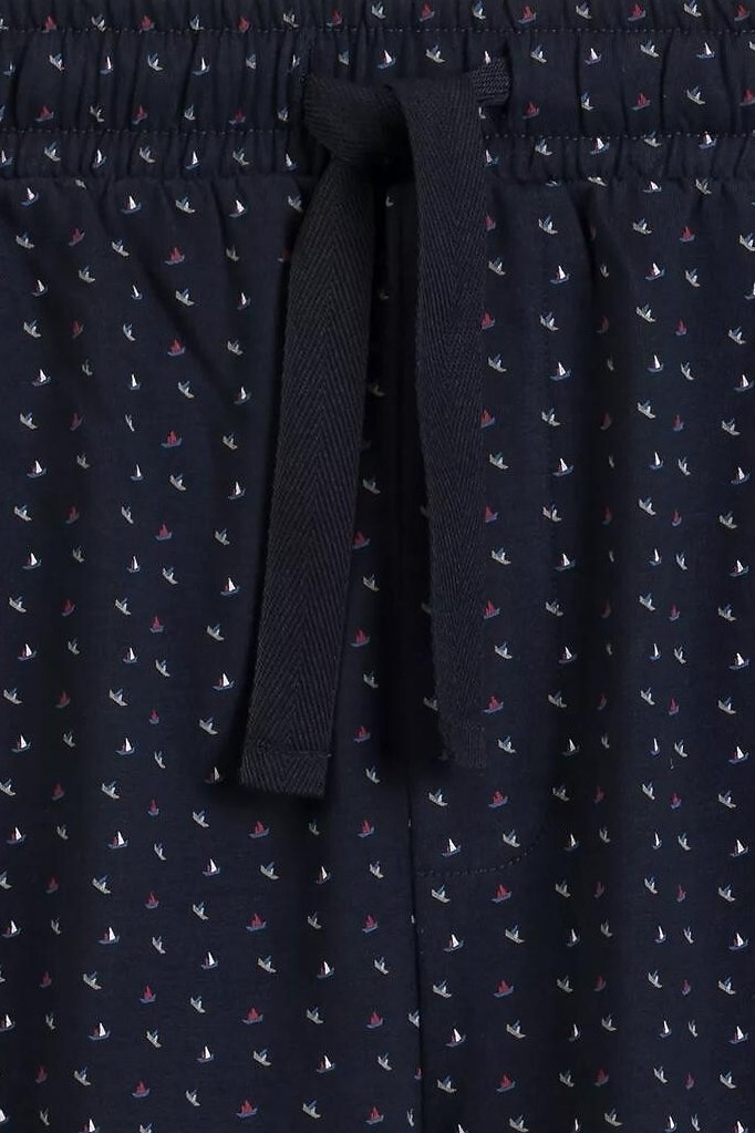Minimalistická na pohled, maximálně komfortní při nošení – pánské pyžamo, ve kterém se odpočívá opravdu snadno. Prodyšná bavlna je lehká a příjemná, takže se hodí na každodenní nošení i teplejší noci. Pohodlný střih neomezuje v pohybu a šortky si upravíte přesně podle sebe díky praktické šňůrce v pase. Jemný námořnický potisk dodává modelu nenápadný detail, který oživí celkový vzhled, aniž by působil výrazně. Ideální volba pro klidný spánek, víkendové ráno i pohodový večer doma.