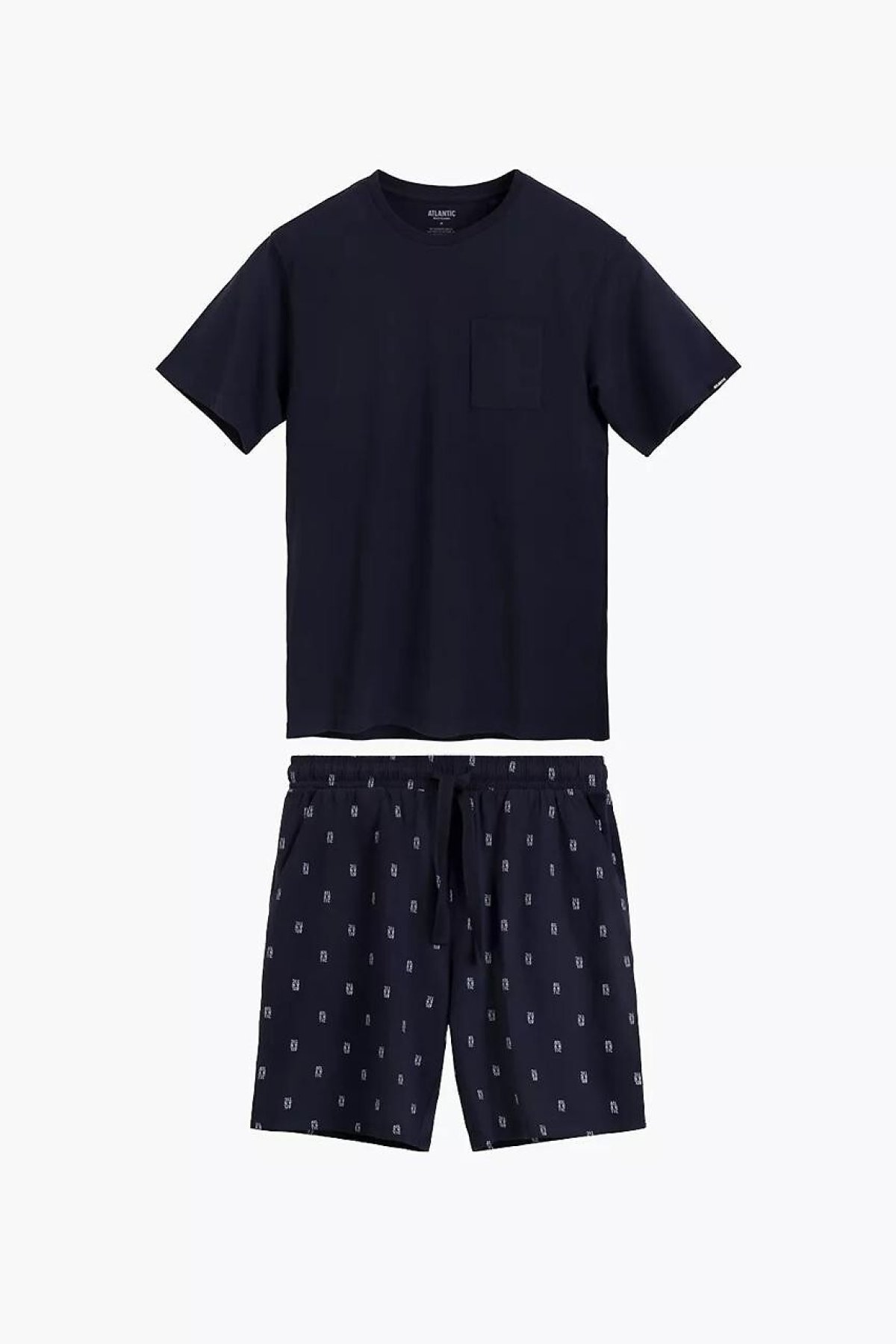 Pánske pyžamo Atlantic NMP-402 kombinuje hladké tričko s potlačou loga Atlantic. Voľnejší strih, krátke rukávy a okrúhly výstrih zabezpečujú pohodlie pri spánku aj domácom oddychu, zatiaľ čo šnúrka v páse pomáha lepšie prispôsobiť sa postave.