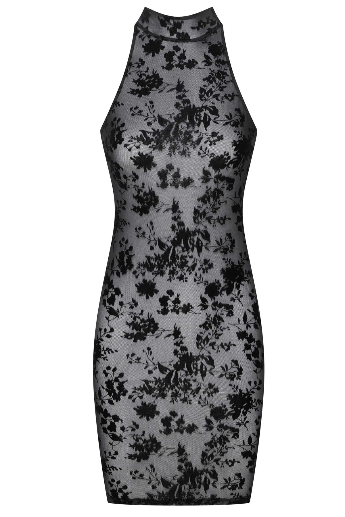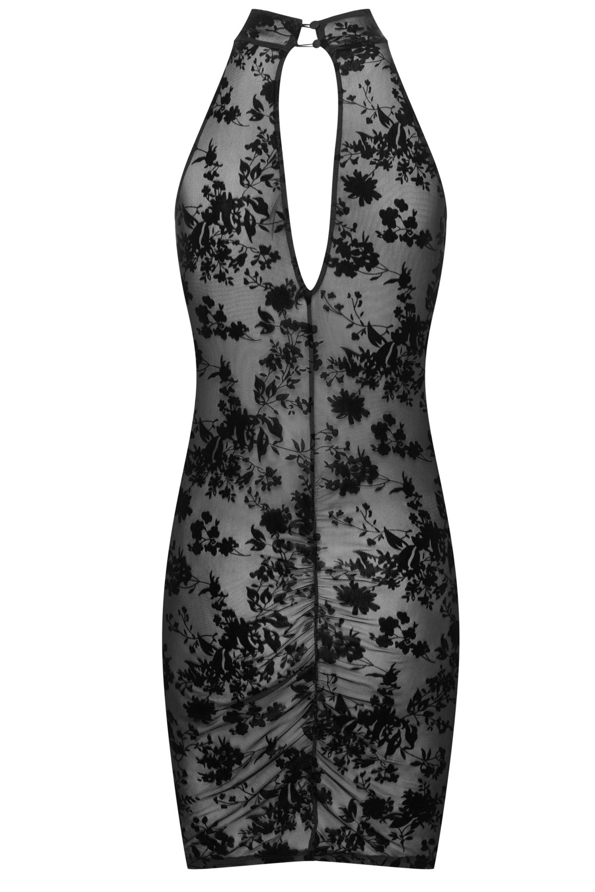 Šaty Zanja zaujmou přiléhavým střihem a smyslnými detaily. Transparentní tyl se sametovým florálním motivem dodává modelu výrazný a elegantní vzhled, zatímco uzavřený výstřih vpředu kontrastuje s odhalenými zády a jemným zapínáním na saténové knoflíčky. Spodní část je doplněná decentním řasením, které zvýrazňuje křivky a podtrhuje ženskou siluetu. Model je vhodný na večery, kdy chcete působit sebevědomě, elegantně a nepřehlédnutelně.