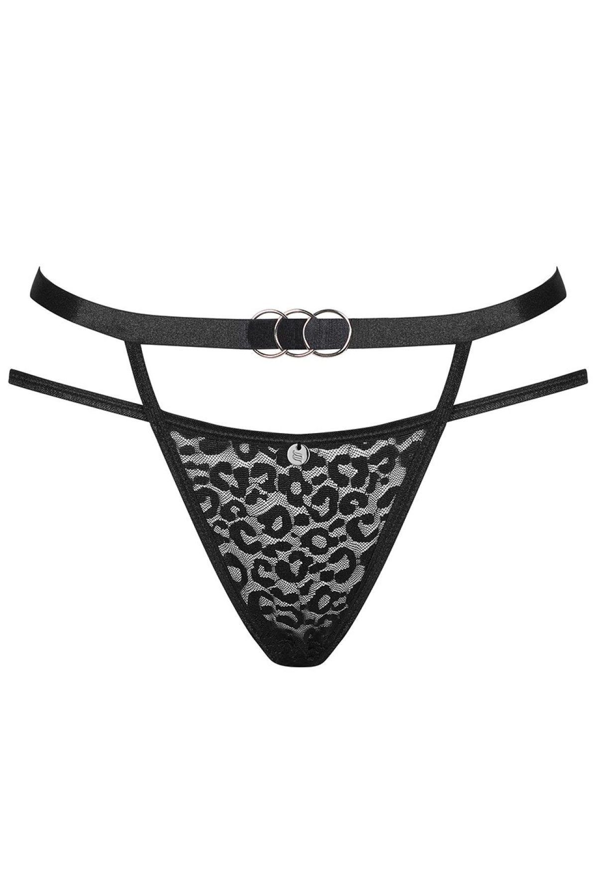 Dodajte svojej bielizni poriadnu dávku elegancie! Tieto čierne tangá s leopardím vzorom spájajú divoký vzhľad s rafinovaným strihom, ktorý podčiarkne ženské krivky. Prednú časť zdobí zmyselná priesvitná sieťovina s leopardím motívom a dvojitý pás s kovovými krúžkami, ktoré dodávajú modelu nádych luxusu. Zadná časť odhaľuje viac, než skrýva, a spolu s jemnými elastickými prúžkami perfektne padne na telo. Ideálna voľba pre večery, kedy chcete očariť a cítiť sa neodolateľne.