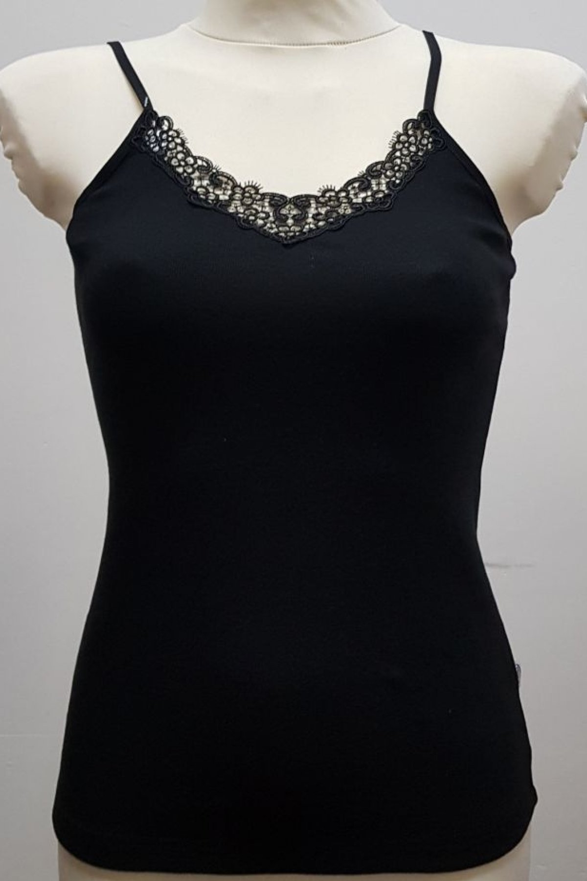 dámske tielko z kvalitnej 100% bavlny úzke ramienka pre jemný vzhľad výstrih zdobený kvetinovou gipiúrou príjemný,…