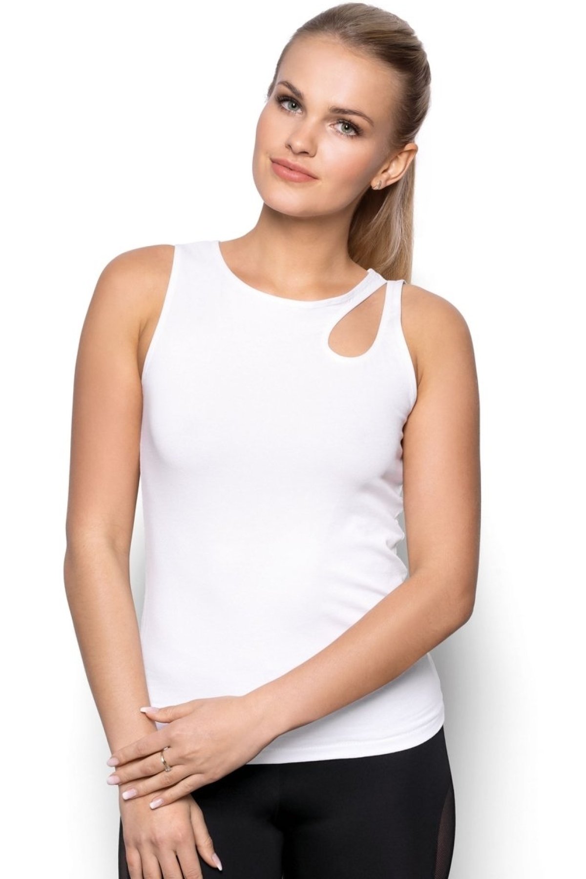 Bavlnené športové tričko s efektným výrezom na ramene.