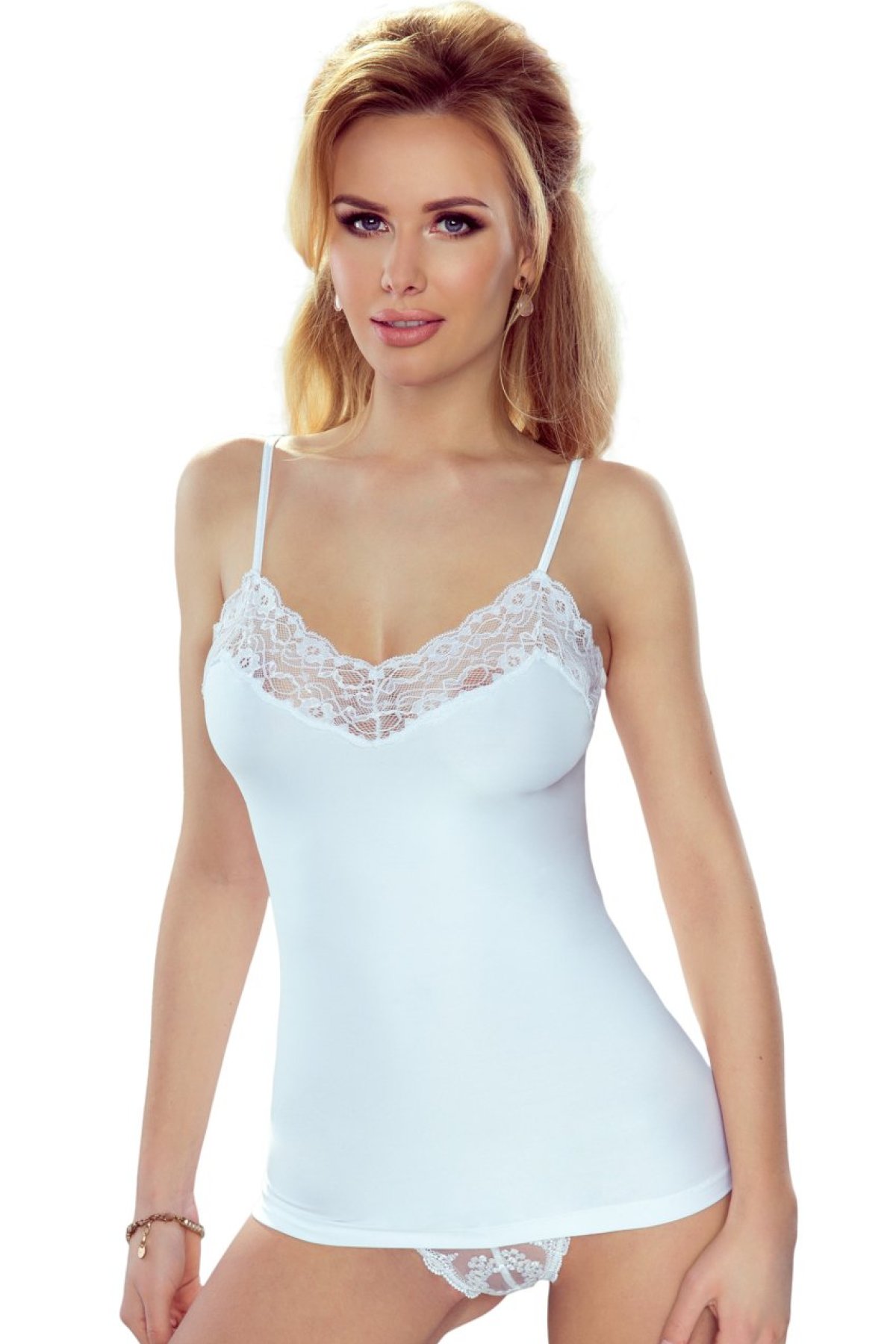 Tielko s tenkými ramienkami a čipkovanou vsadkou. Hladký materiál. Nemačká sa. Tri farebné varianty.
