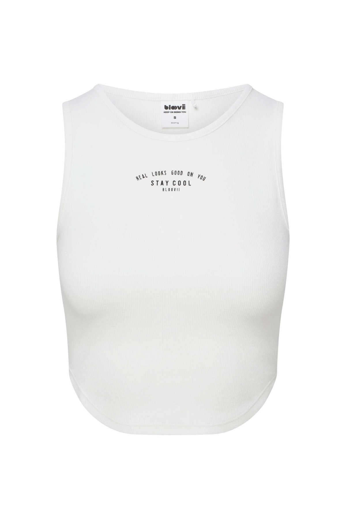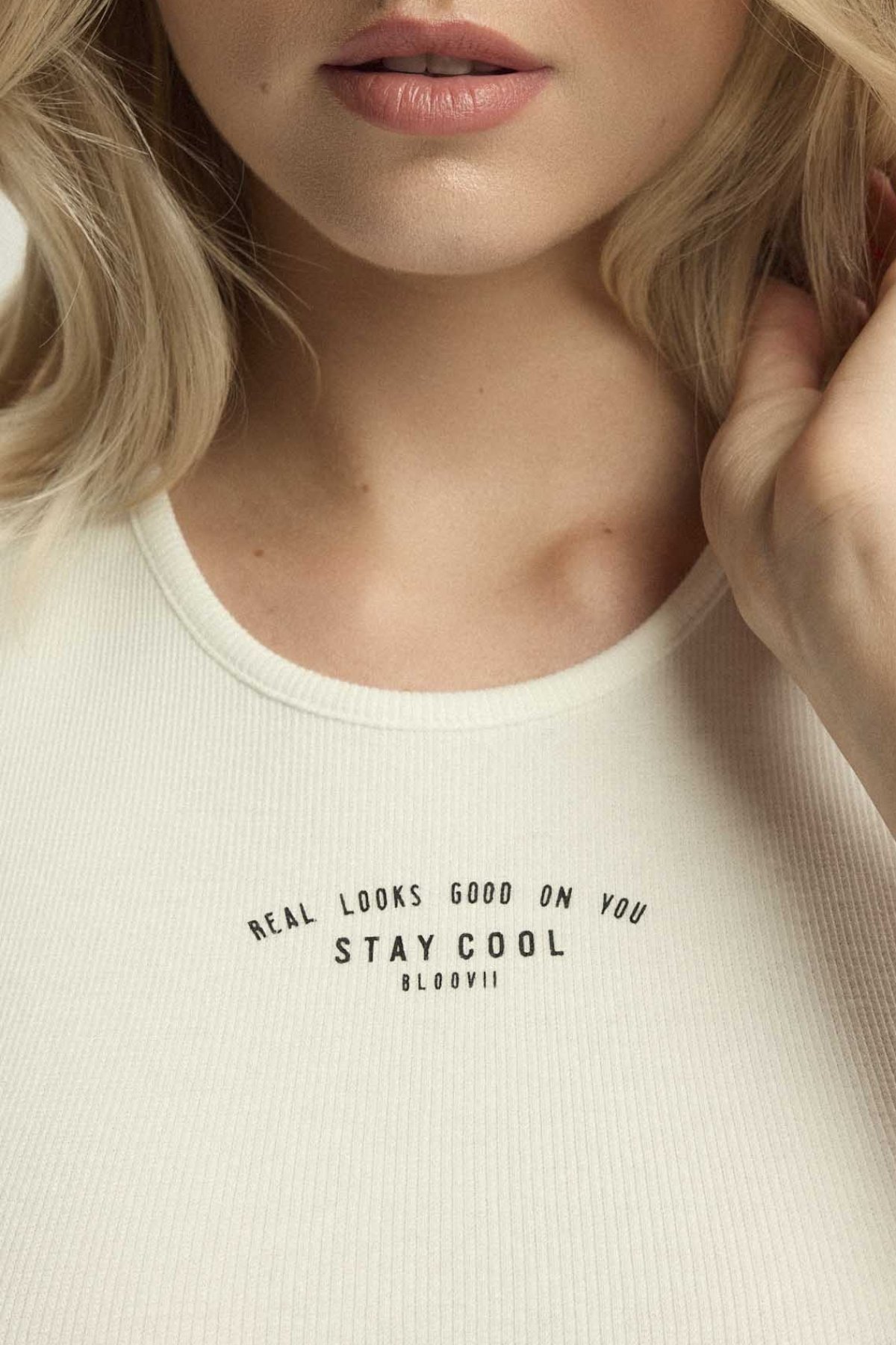 Crop top Lann v krémové barvě zaujme čistým střihem a jemným potiskem na přední straně. Krátká délka zvýrazní pas, zatímco žebrovaný úplet dodává modelu modernější vzhled. Širší ramínka a kulatý výstřih přispívají k pohodlnému nošení a lehce sportovnímu charakteru. Hodí se na letní dny i pro běžné outfity, například v kombinaci s kalhotami nebo sukní s vyšším pasem.