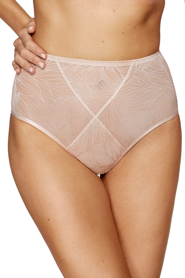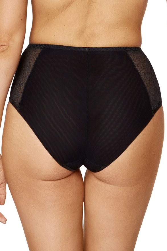 Vyšší pás krásne zvýrazňuje a opticky zoštíhľuje siluetu. Zadná časť z priehľadného tylu zaručuje, že nohavičky nebudú pod oblečením tak viditeľné. Samozrejmosťou je pohodlný elastický pás, ktorý netlačí, a bavlnený klin s certifikátom OEKO-TEX, ktorý zaručuje pohodlie a bezpečnosť v intímnej oblasti.