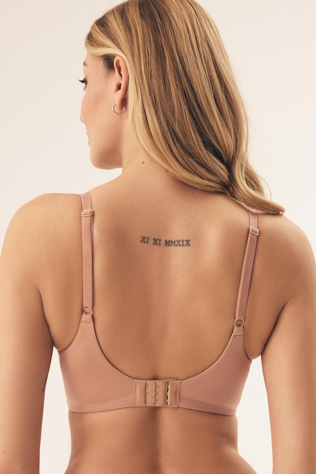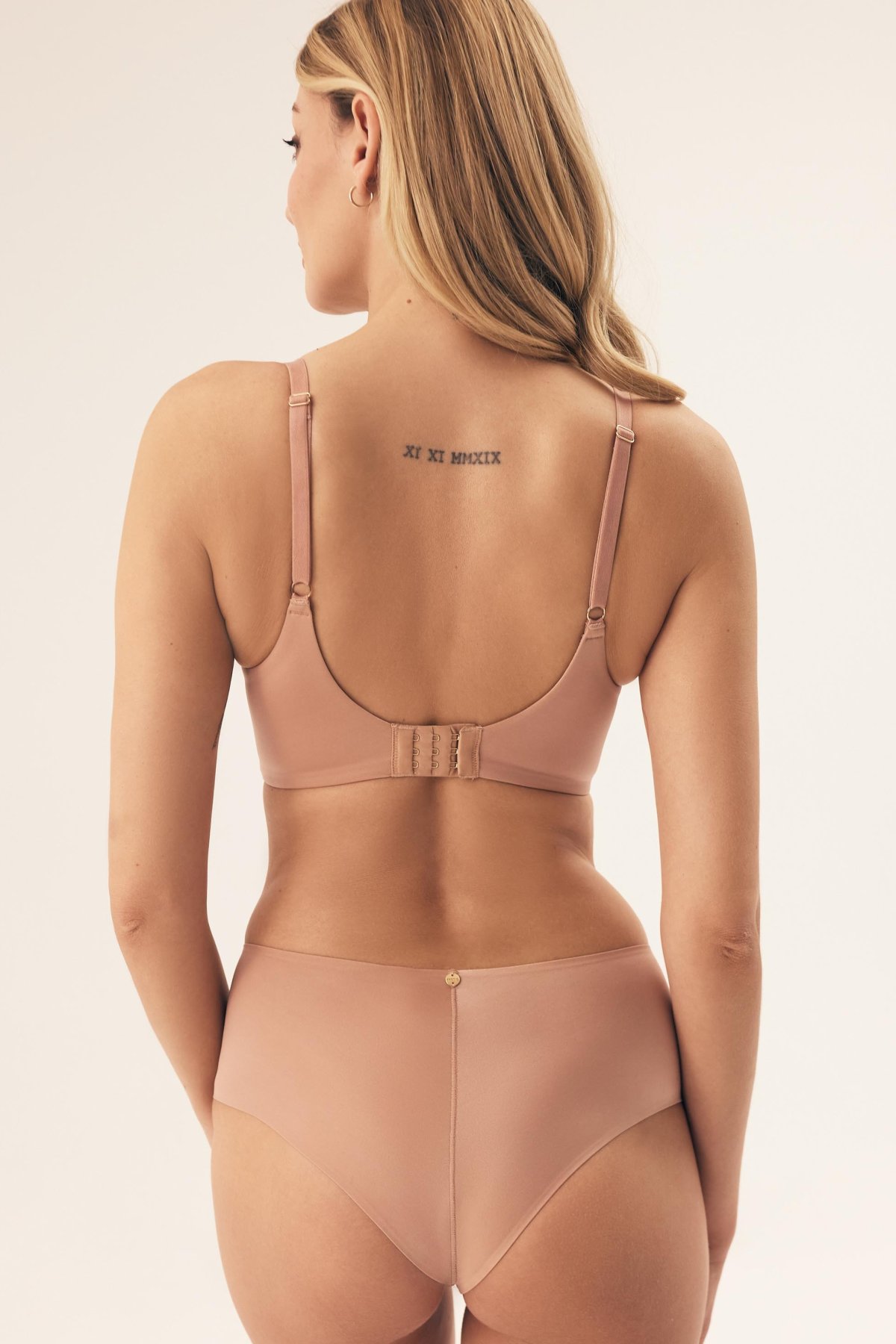 Podprsenka Bosco je navržená pro hladký a upravený vzhled pod oblečením. Vyztužené košíčky bez push-up efektu pomáhají jemně tvarovat poprsí do přirozeně zaoblené linie, zatímco hladký povrch s lehkým leskem působí čistě a elegantně. Bezešvé zakončení oceníte zejména pod přiléhavými kousky, kde podprsenka zůstává méně nápadná. Nastavitelná ramínka umožňují lepší přizpůsobení, zadní zapínání na háčky pak podporuje stabilní usazení na těle. Podprsenku doplňuje zlatá aplikace s logem Esotiq, která modelu dodává decentní ozdobný detail.