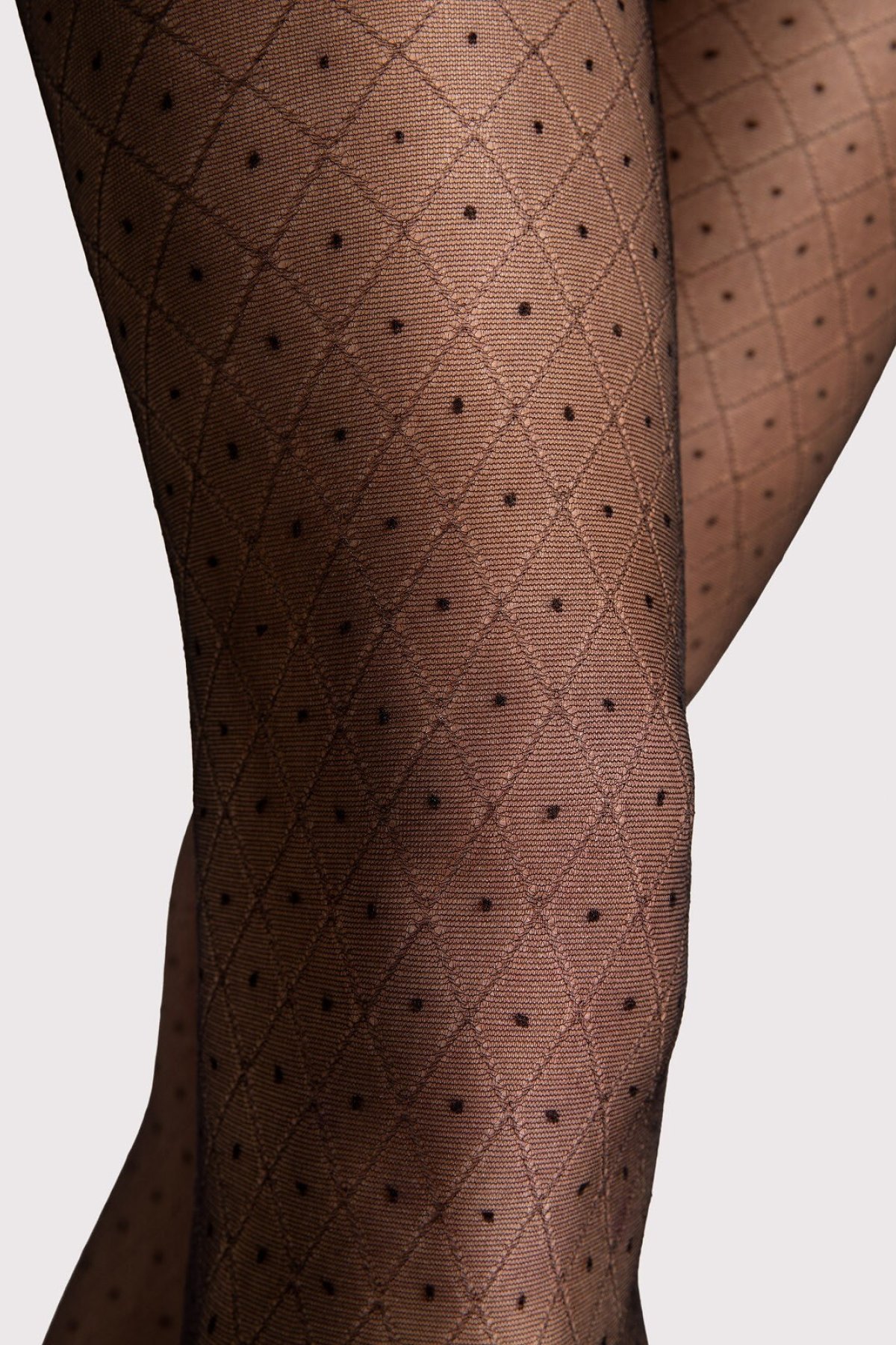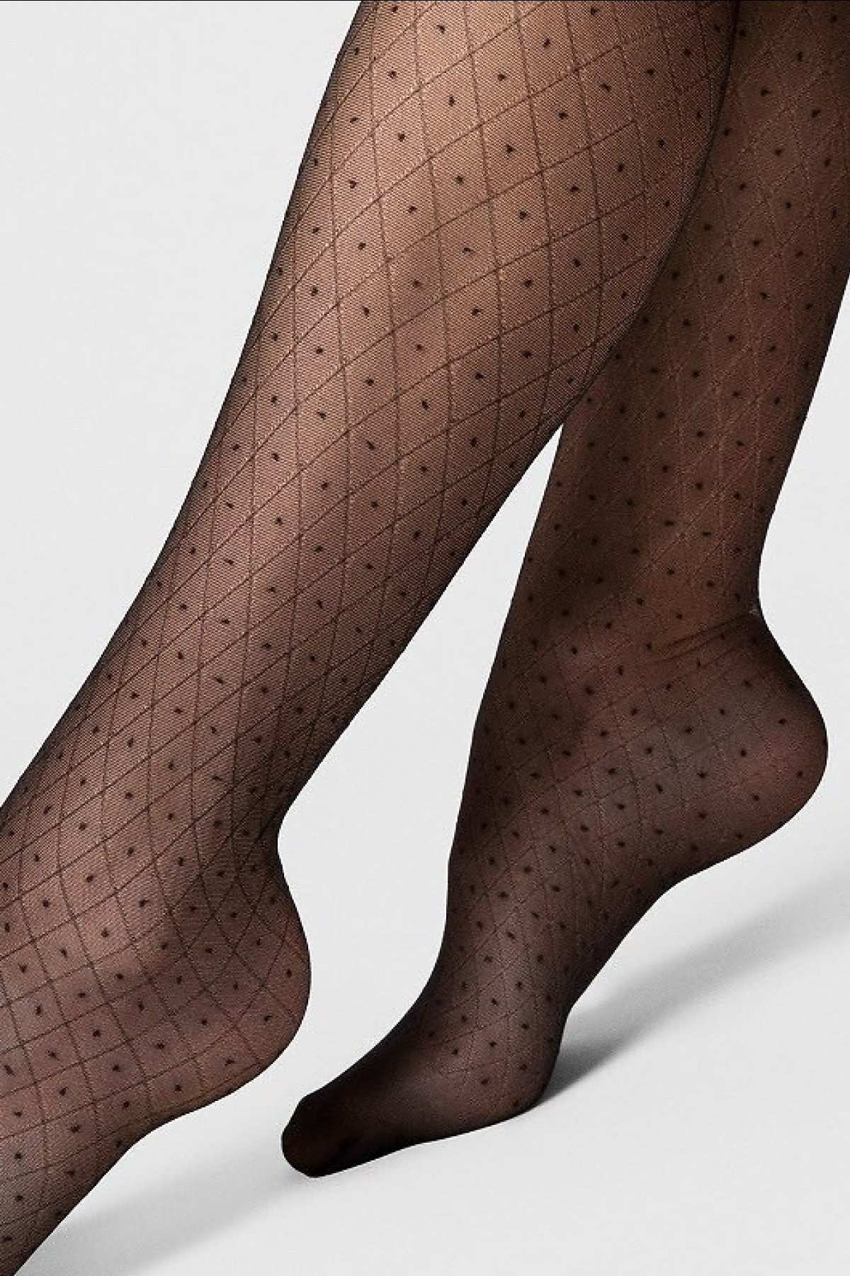 Silonky Fiore Maribel 20 den zaujmou jemným vzorem, který kombinuje drobné kosočtverce s decentní tečkou uprostřed. Výsledkem je elegantní, lehce grafický vzhled, který působí žensky a zároveň moderně. Díky jemnosti 20 DEN jsou ideální pro každodenní nošení, do kanceláře i ke slavnostnějším stylizacím. Pružný materiál se dobře přizpůsobí postavě a zajišťuje pohodlí při nošení.