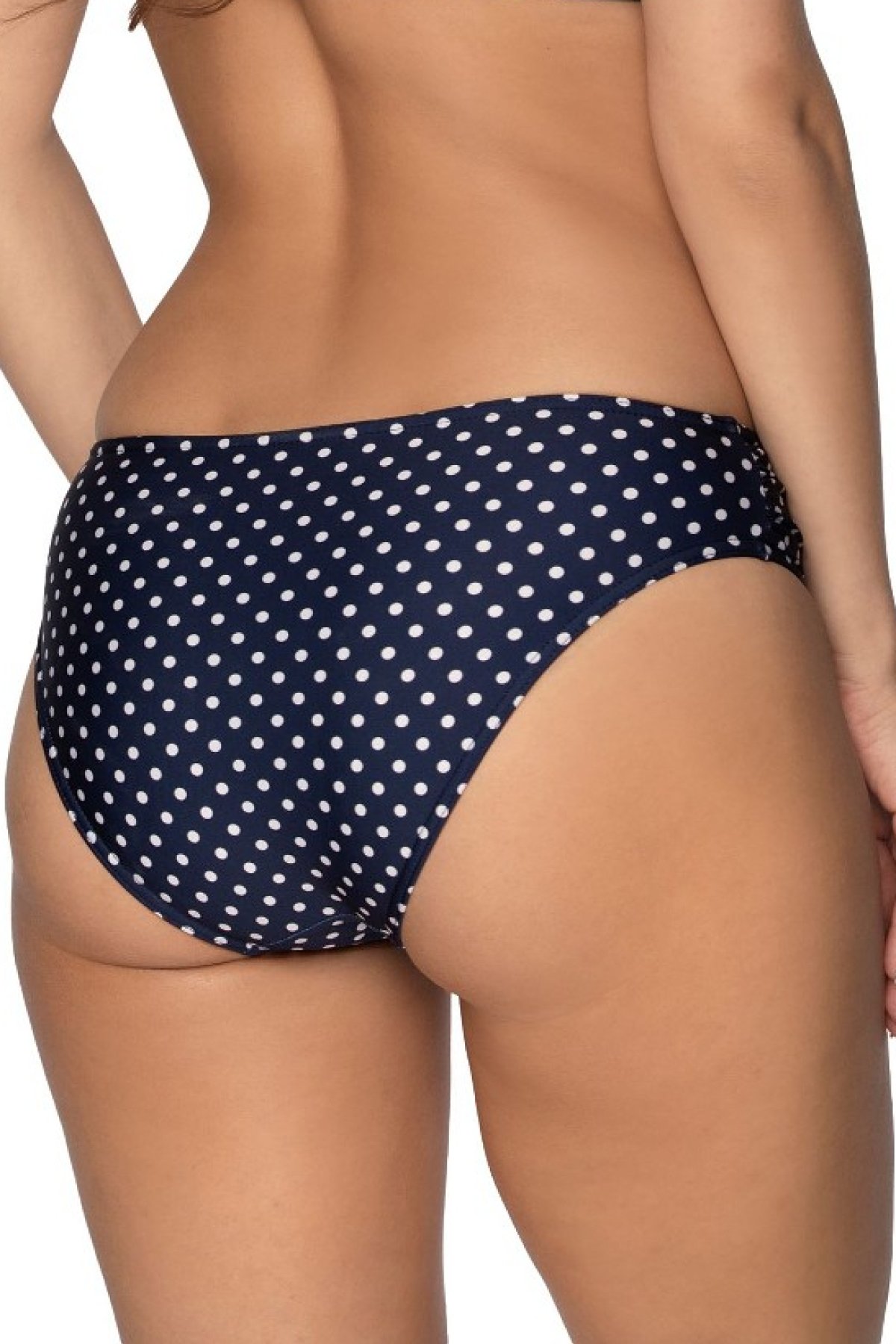 Úplná klasika! Ale dokonalá! Námořnická modř doplněna rozkošnými bílými puntíky. To je správný retro kousek Niue! Klasický střih kalhotek zvýrazní boky i zadeček. Na bocích je tkanina lehce nařasená. Lemování je elastické a poddajné, poskytuje plný komfort během nošení. Luxusní plavky, ve kterých se za své křivky rozhodně nemusíte stydět!