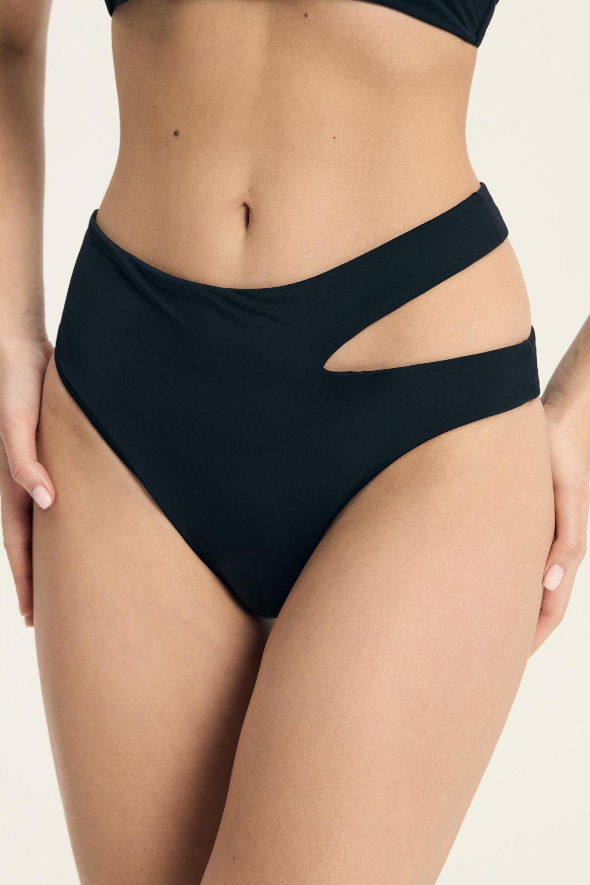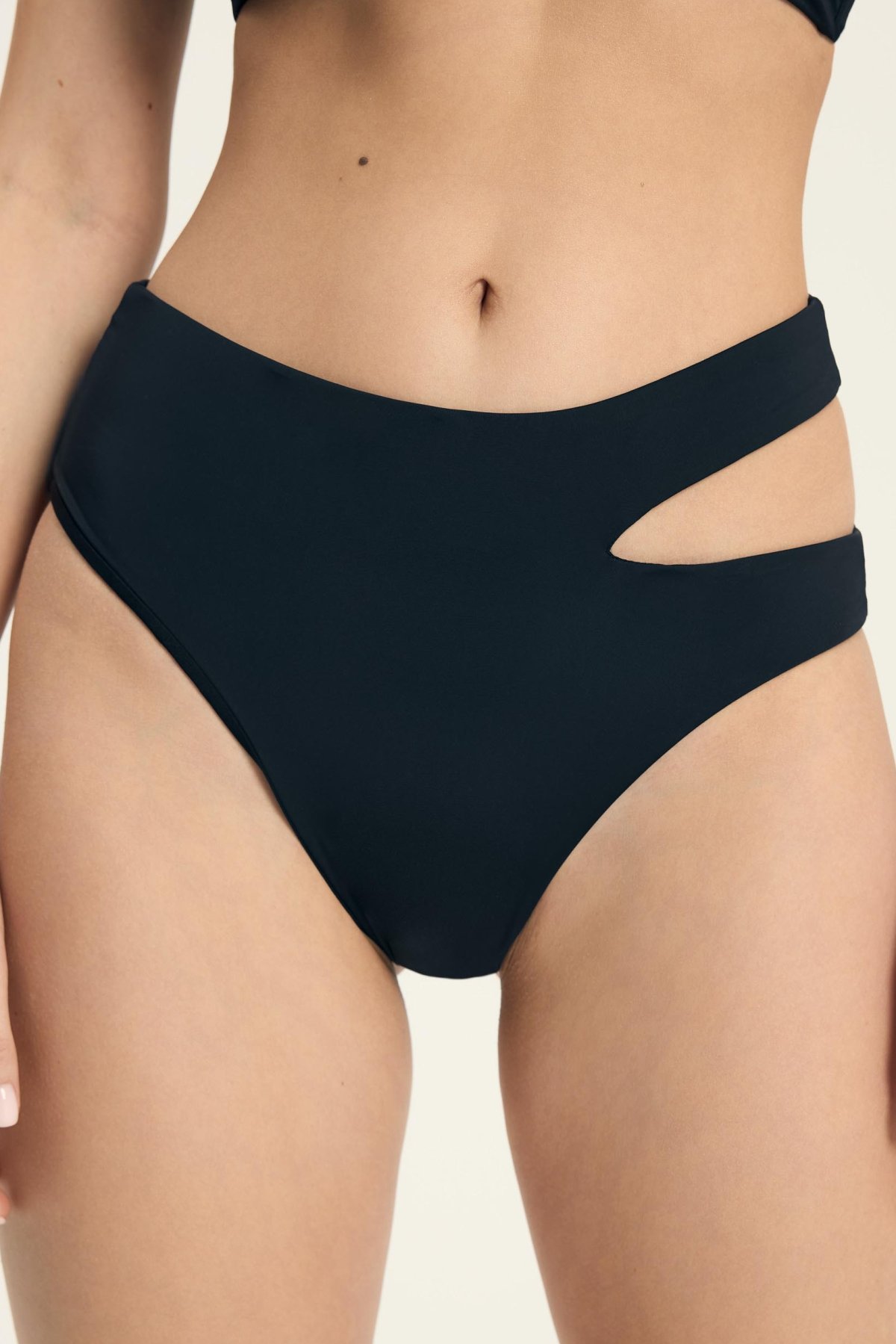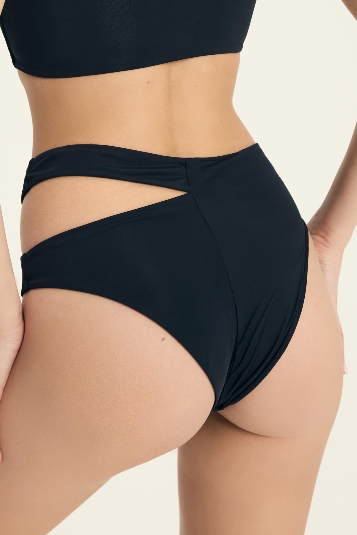 Spodní díl bikin Firenze zaujme čistým designem s výrazným detailem. Vysoký pas opticky prodlužuje nohy a zvýrazňuje linii pasu, zatímco asymetrický pás s průstřihem na pravé straně dodává modelu moderní, lehce odvážný akcent. Hladká, matná tkanina působí minimalisticky a nechává vyniknout střihu. Díky pružnému materiálu se kalhotky přizpůsobí postavě a drží na místě i při pohybu.