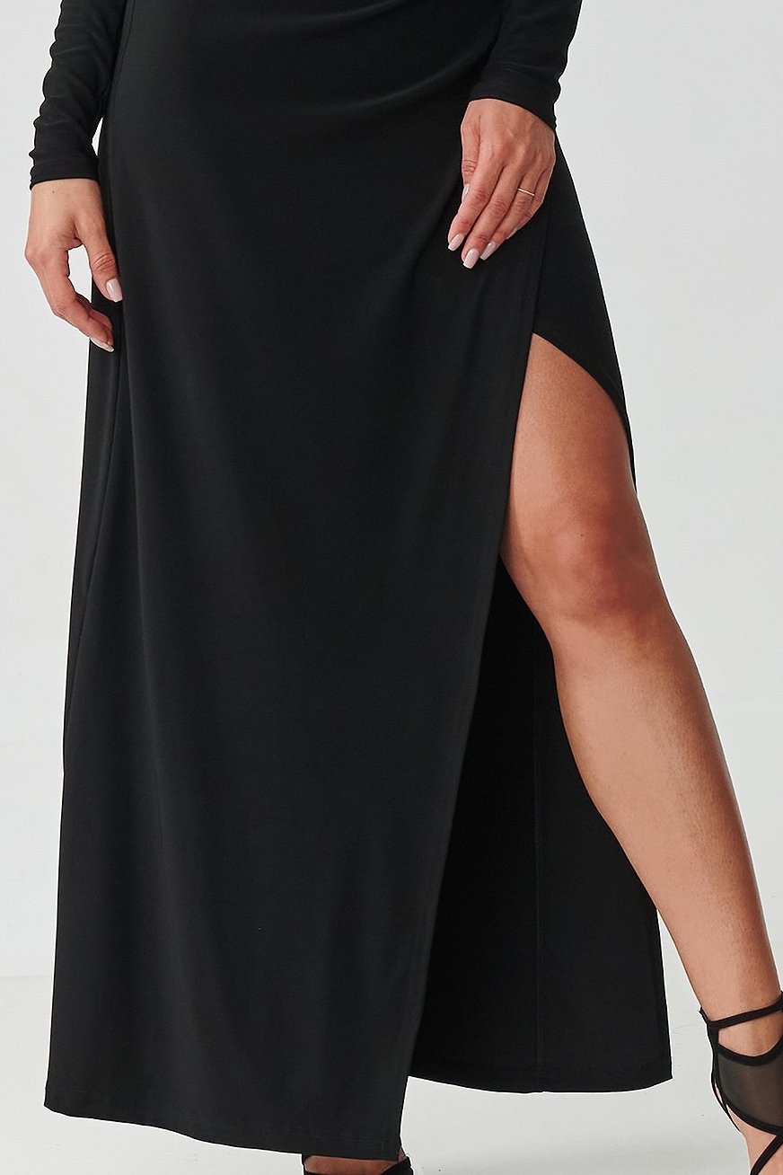 Dlouhé černé večerní šaty s dlouhým rozparkem. Spojení elegance a ženského půvabu.